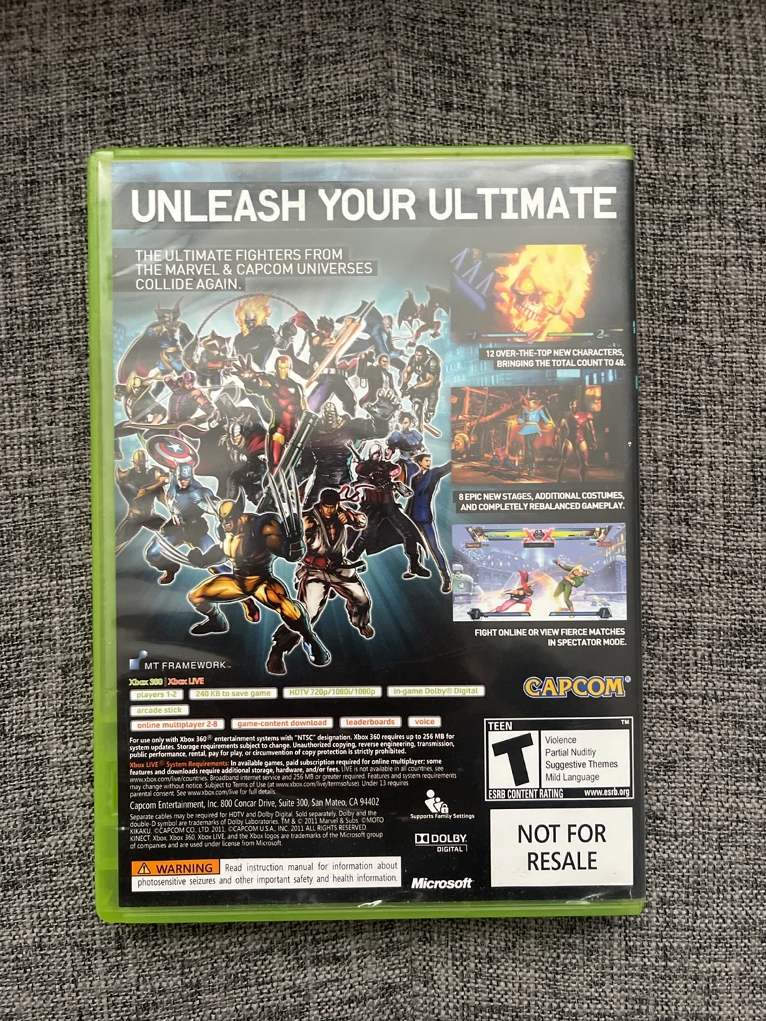 Ultimate Marvel vs. Capcom 3 for Xbox 360. This fighting game features characters from both the Marvel and Capcom universes