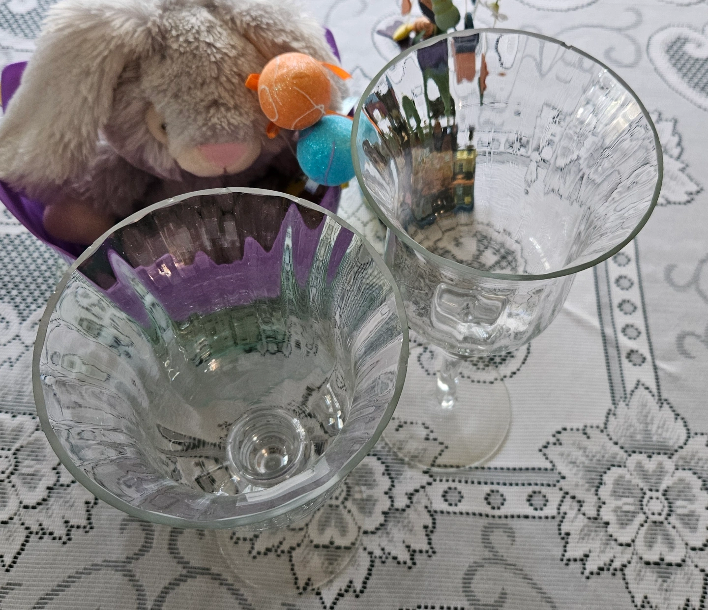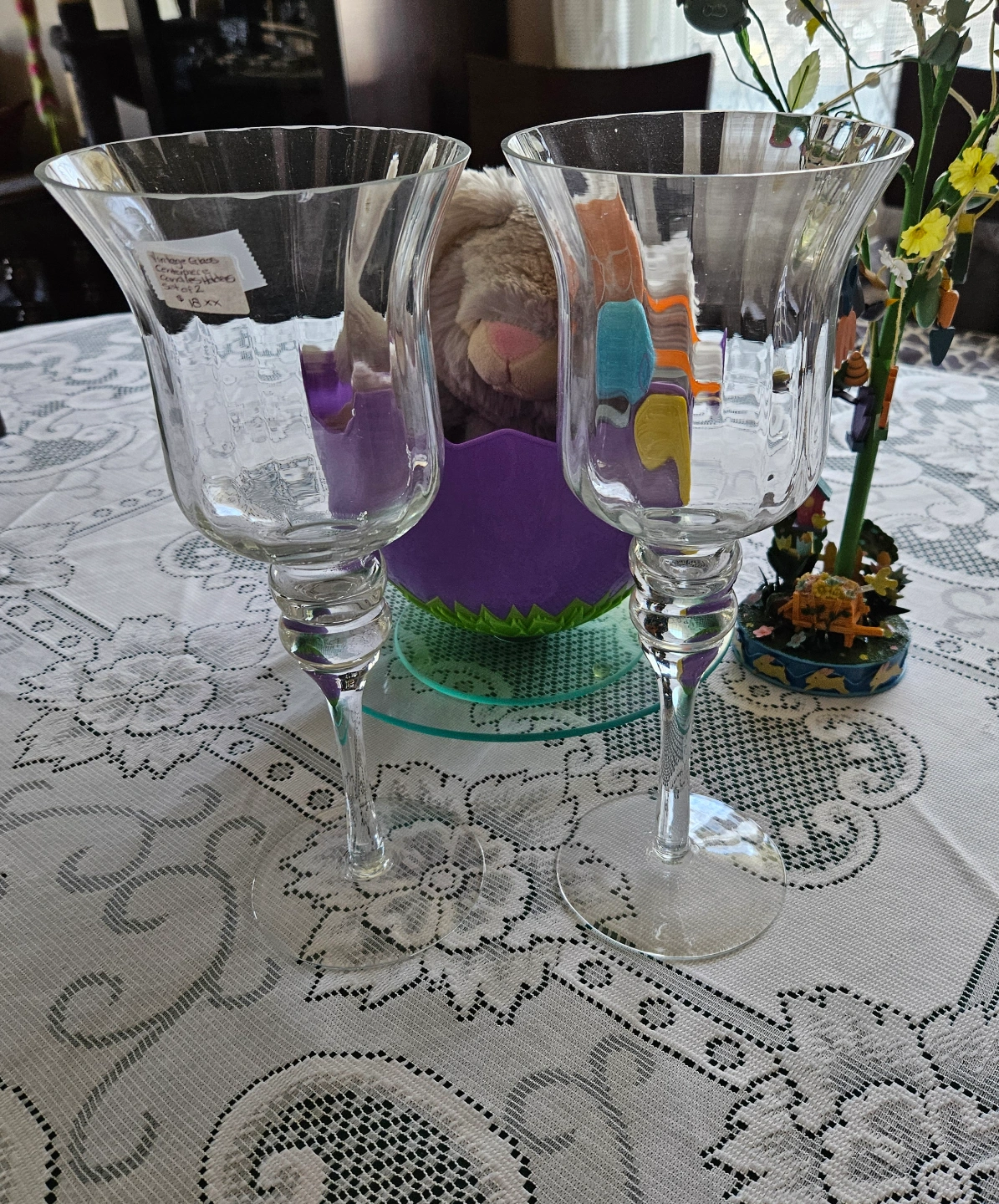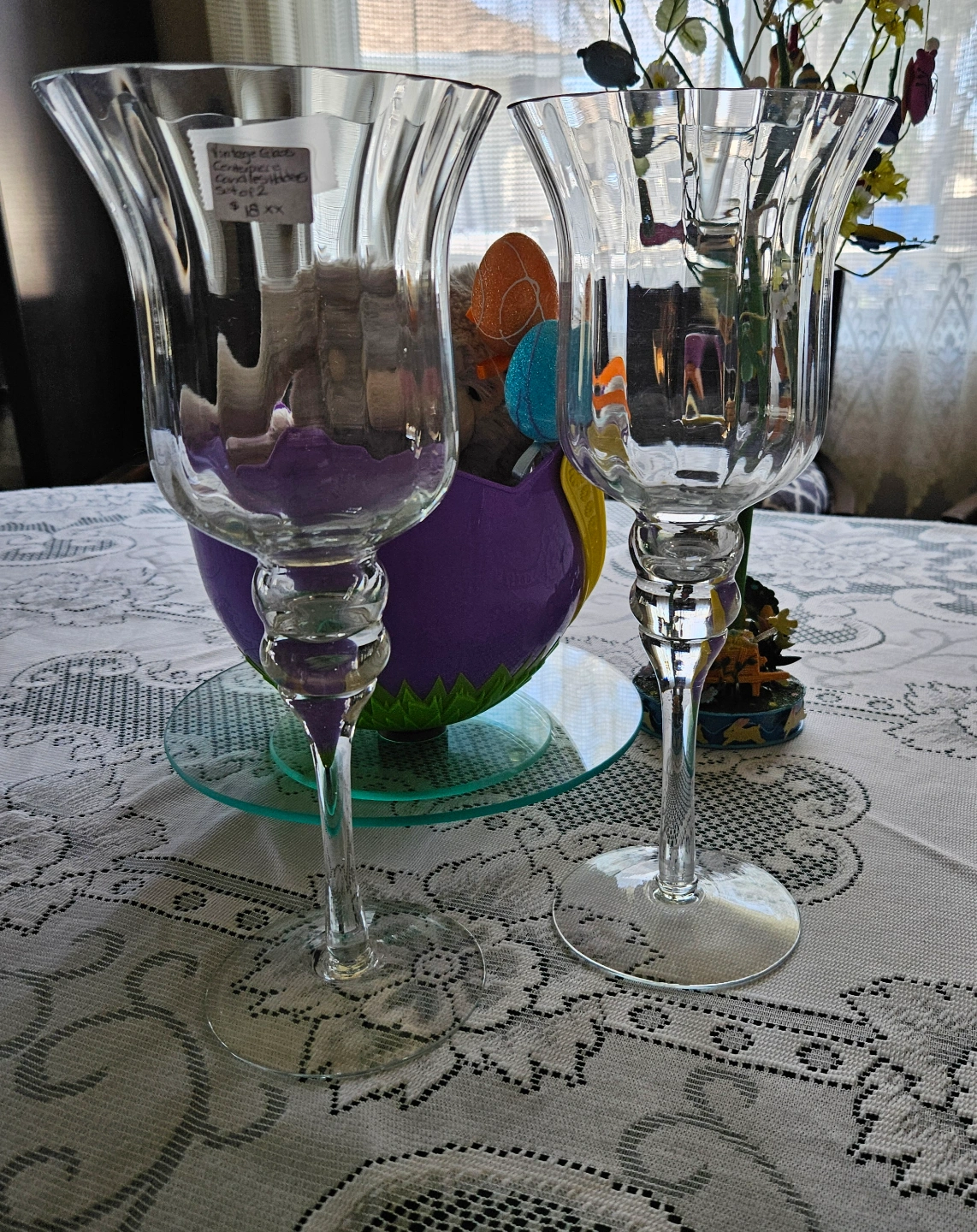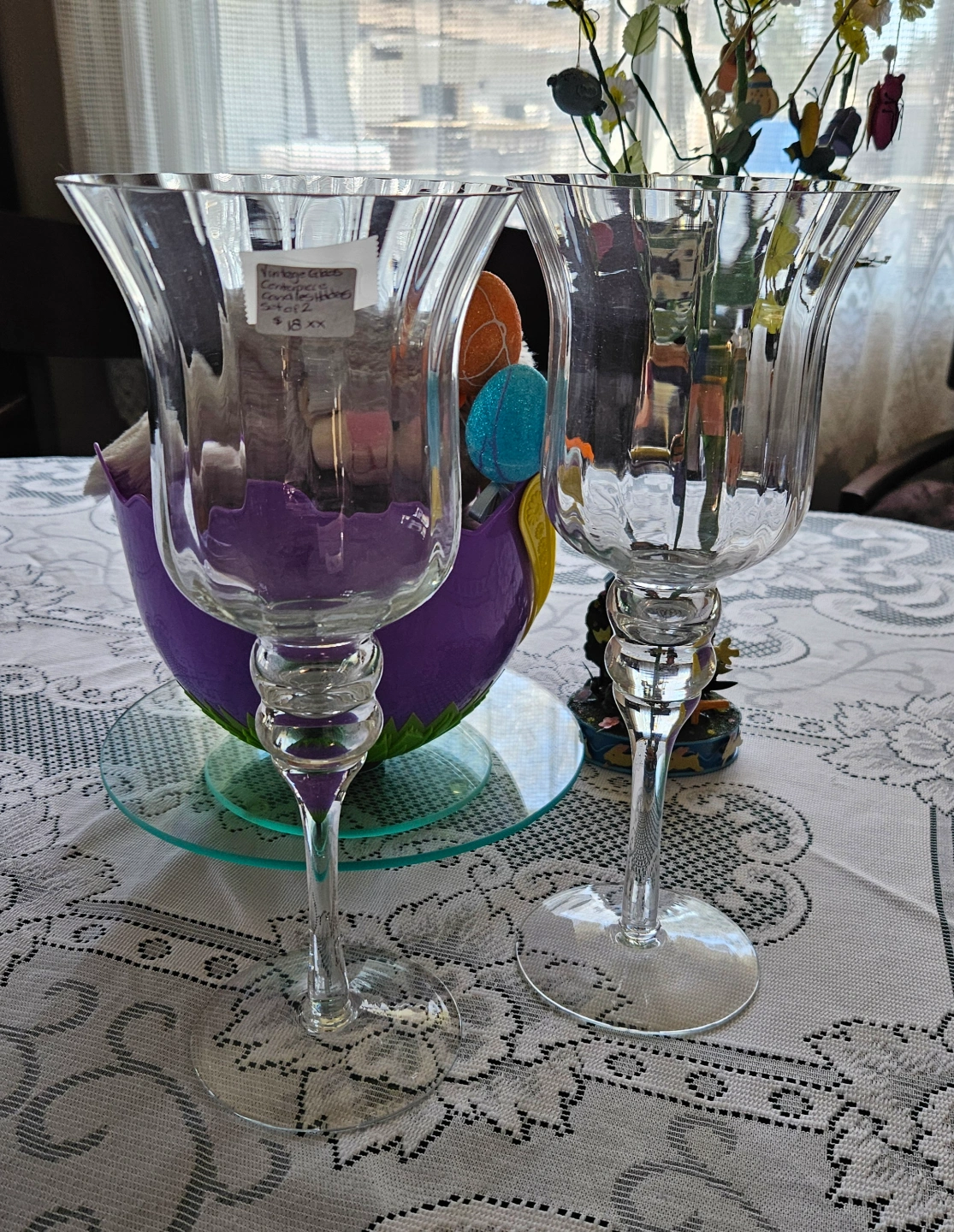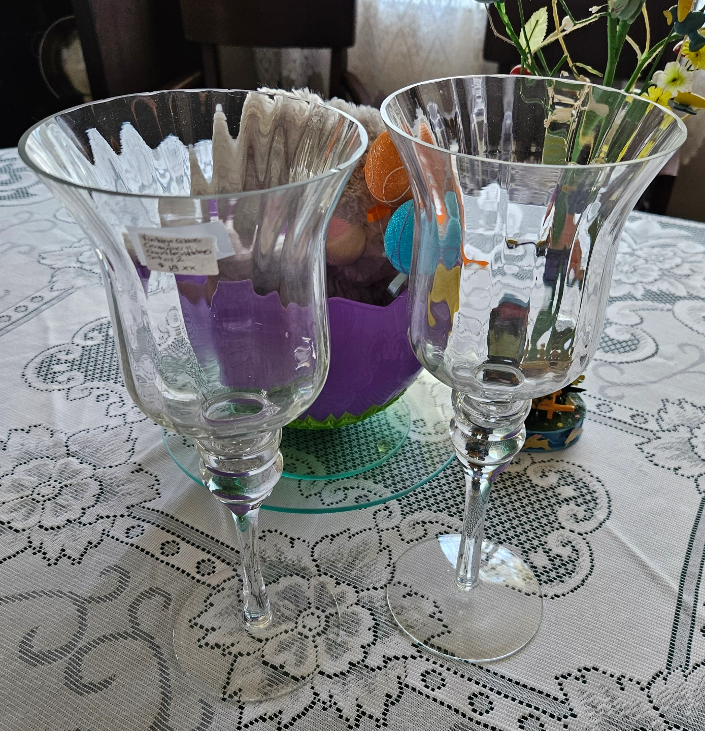 These eye catching centerpiece candle holders stand 12" high and the fluted opening is 5" across.