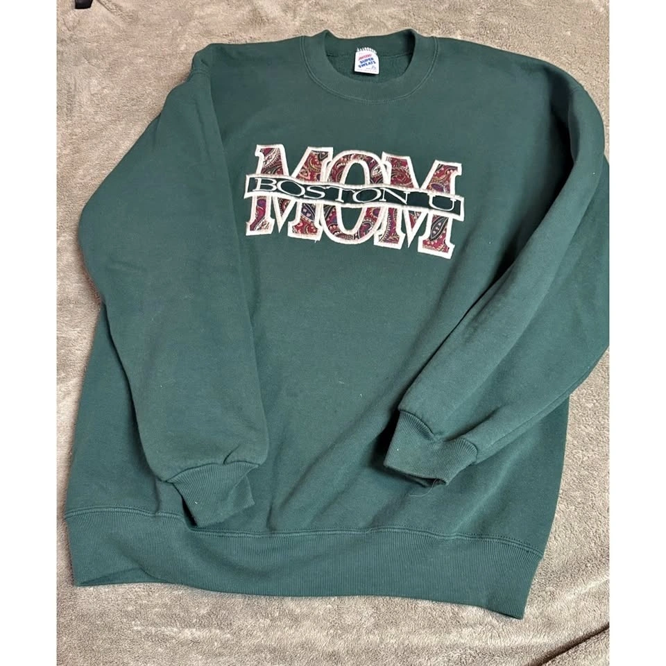 Vintage Boston University Sweater Women XL Green Mom Embroidered