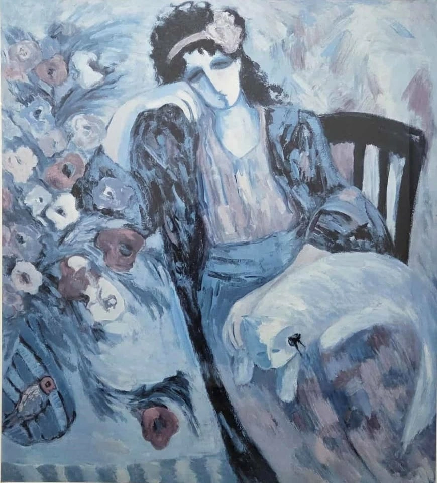 Subject: Elegant woman surrounded by flowers, classic Barbara Wood style