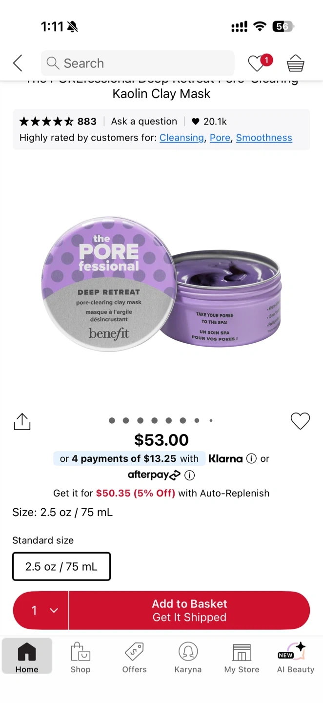 This Benefit pore-clearing clay mask is for deep pore treatment. It's a 2.5 oz / 75 mL size. Take your pores to the spa!