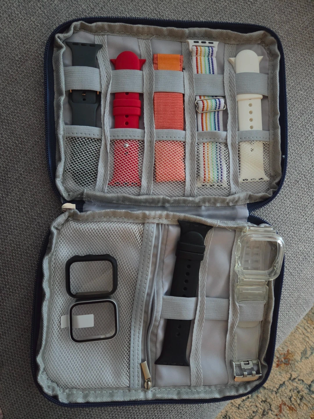 Includes: Original box, magnetic charging cable and original "Periwinkle" (Blue) strap.