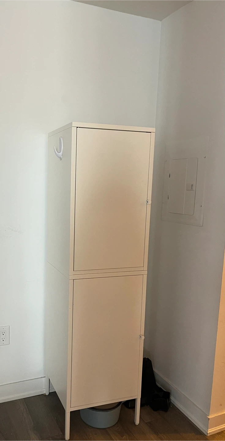 Ikea- Selling a beige metal locker cabinet! It's in great shape and ready for a new home. Perfect for extra storage in a small space, garage, or entryway