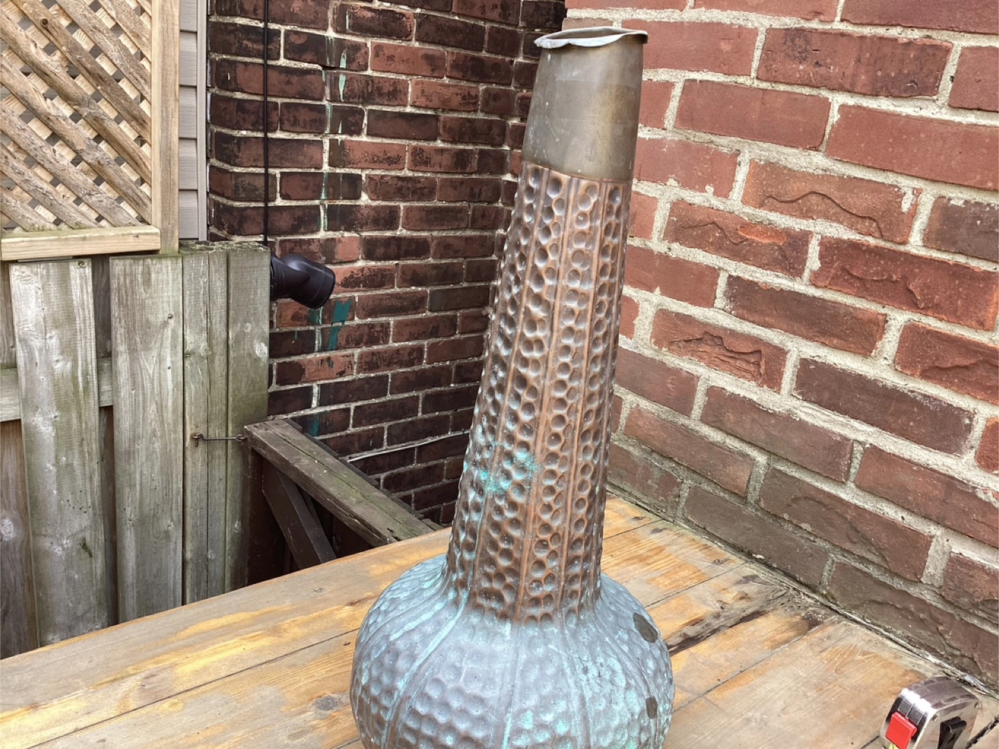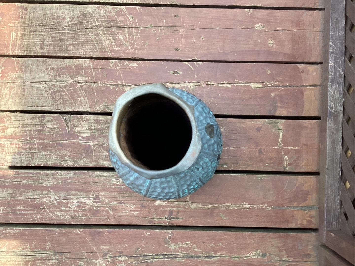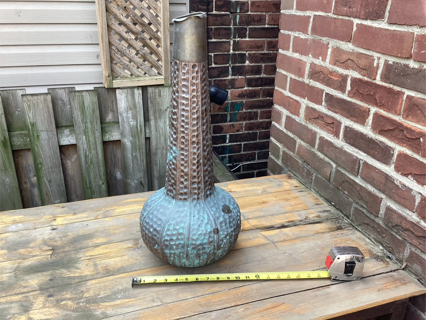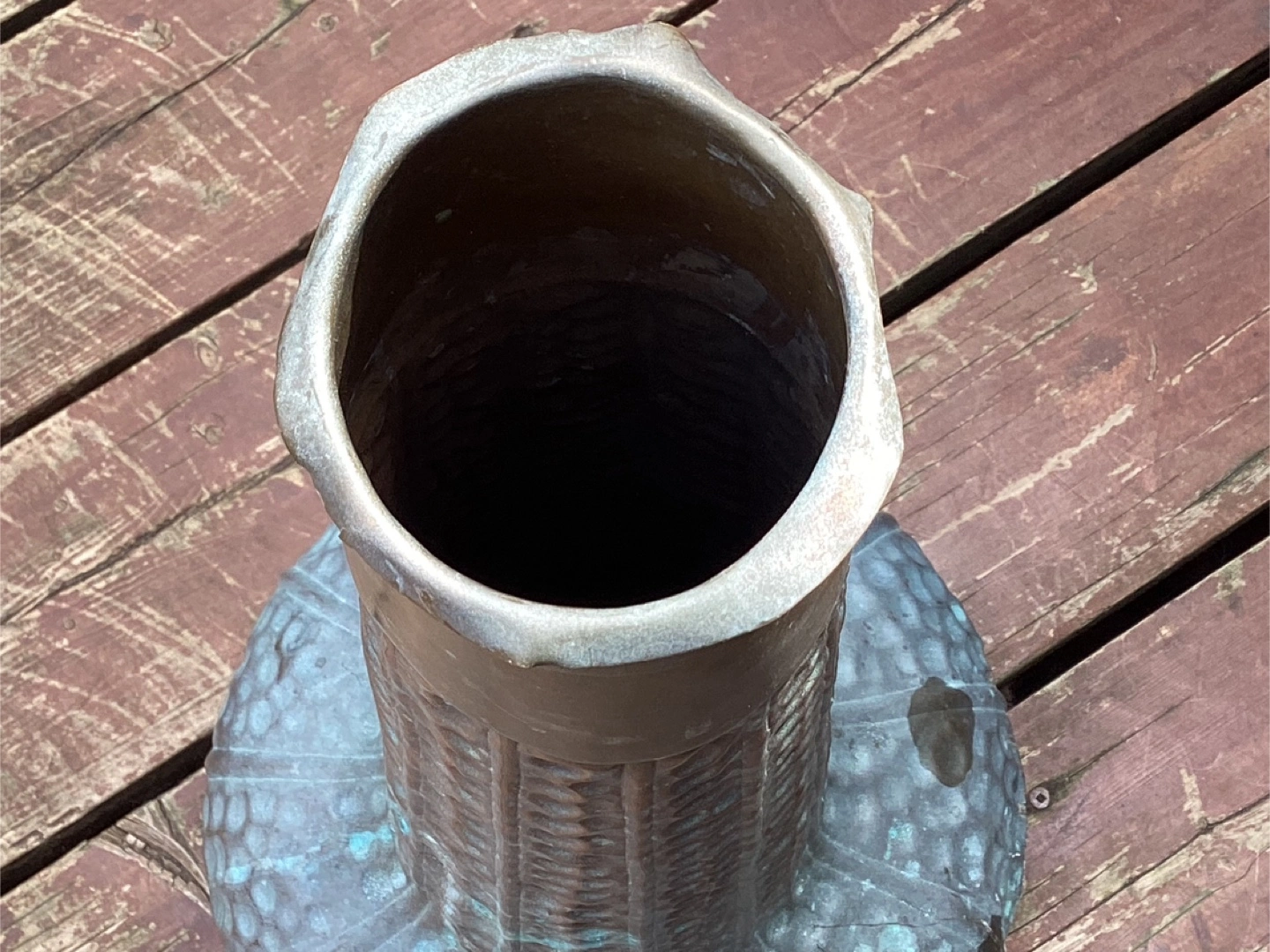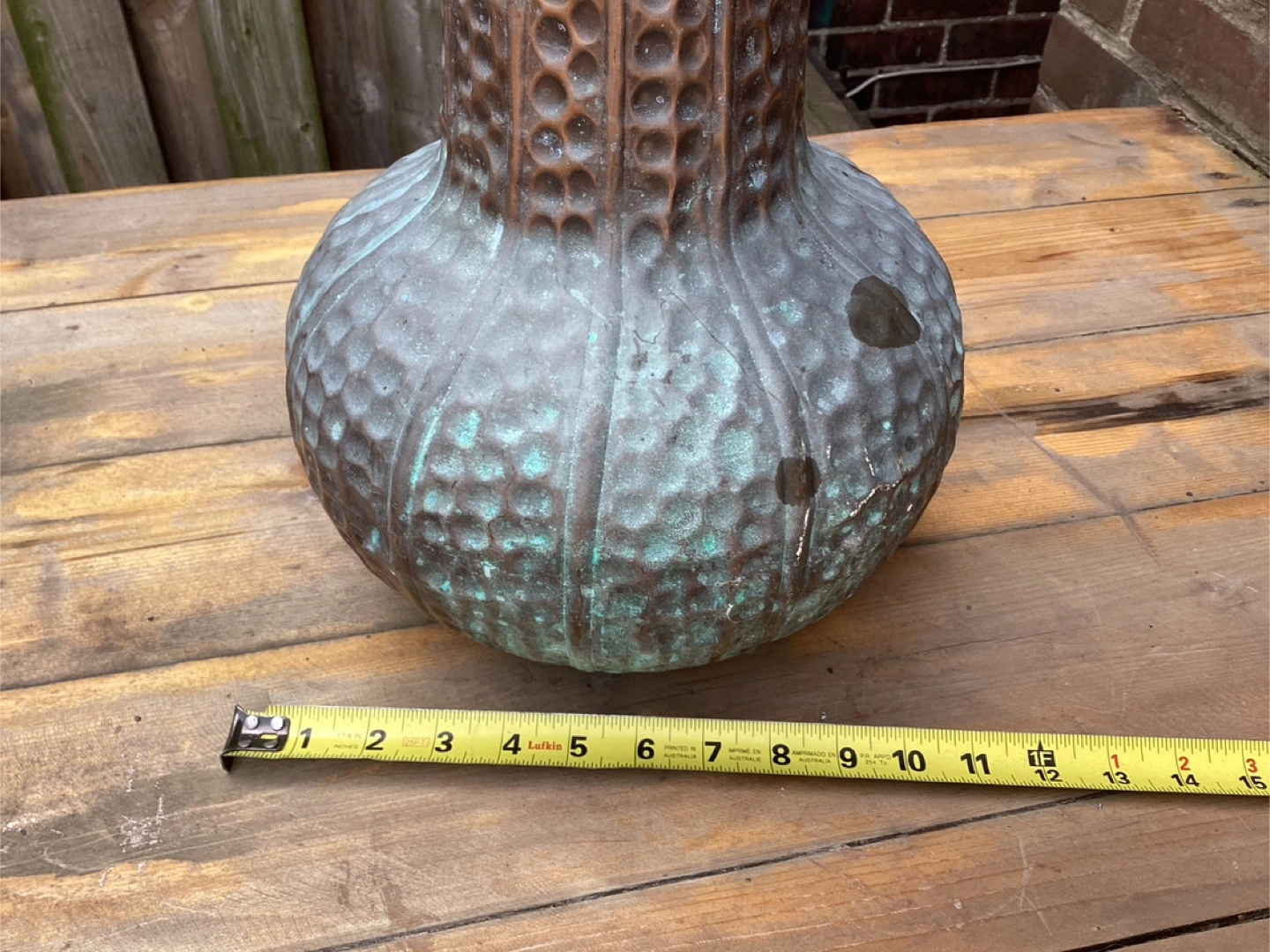 Antique Hammered Copper Pitcher/Vase Brass Top !