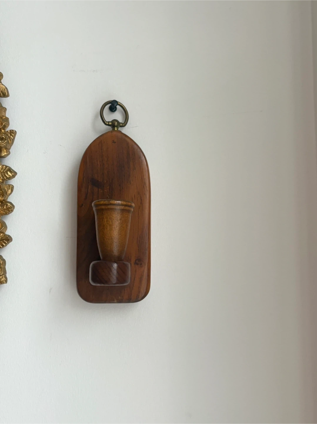 Set of 2 wooden wall sconce candle holder. It's made of wood and features a natural Pick up