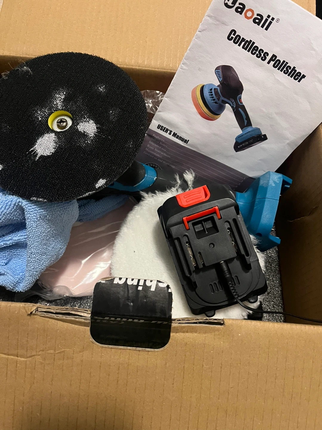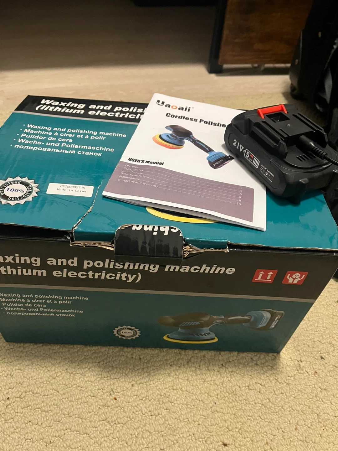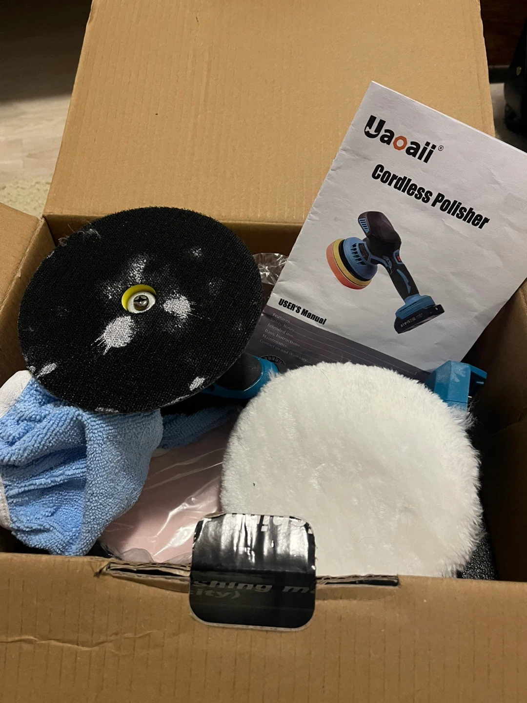 Selling a Uaoaii cordless polisher! It comes with the box and all the accessories you see in the pictures, including the battery and user manual. Great for waxing and polishing your car or other surfaces. Ready for a new home!