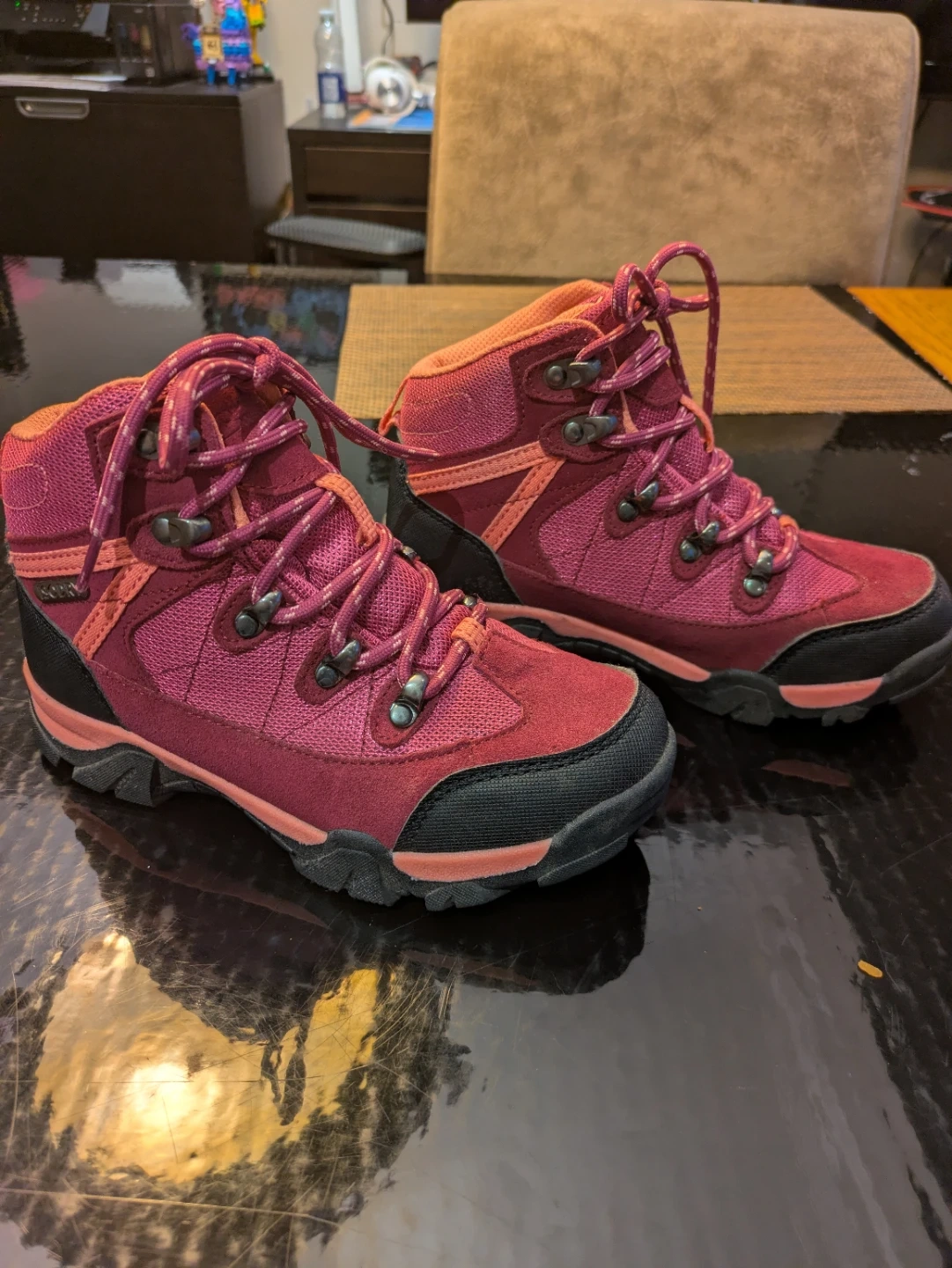 These Columbia hiking boots are designed for little adventurers. They're made with durable synthetic leather and textile uppers. The boots feature a grippy rubber outsole for traction on various terrains.