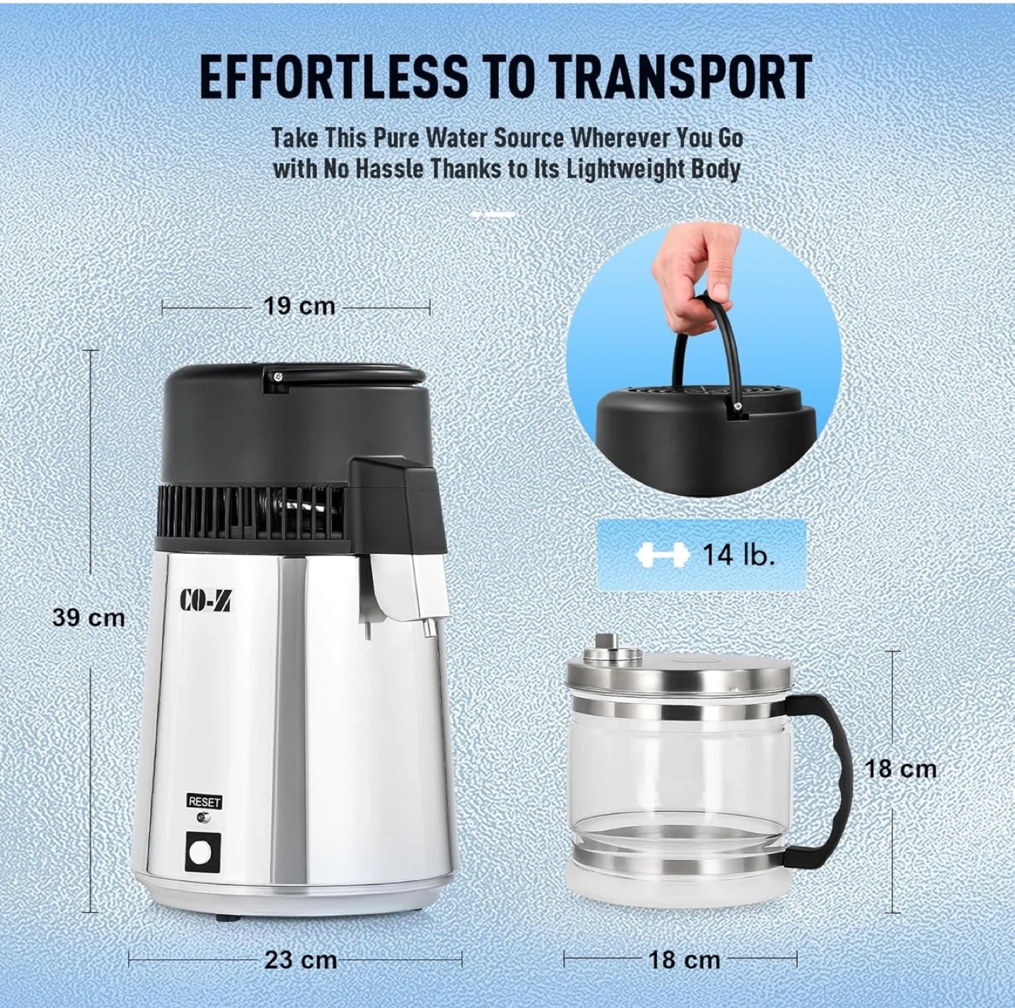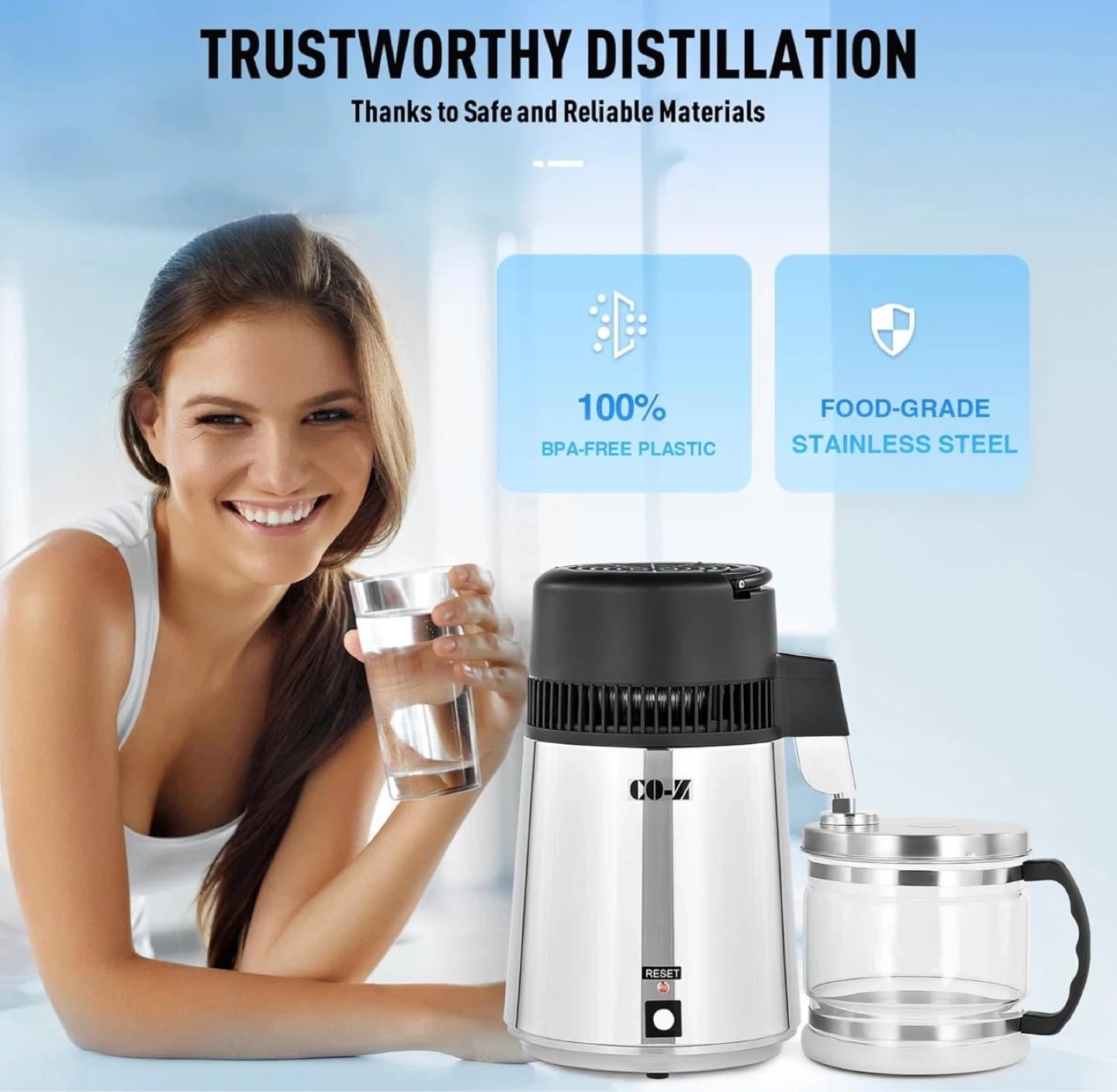 CO-Z Water Distiller 4L Stainless Steel with Glass Container