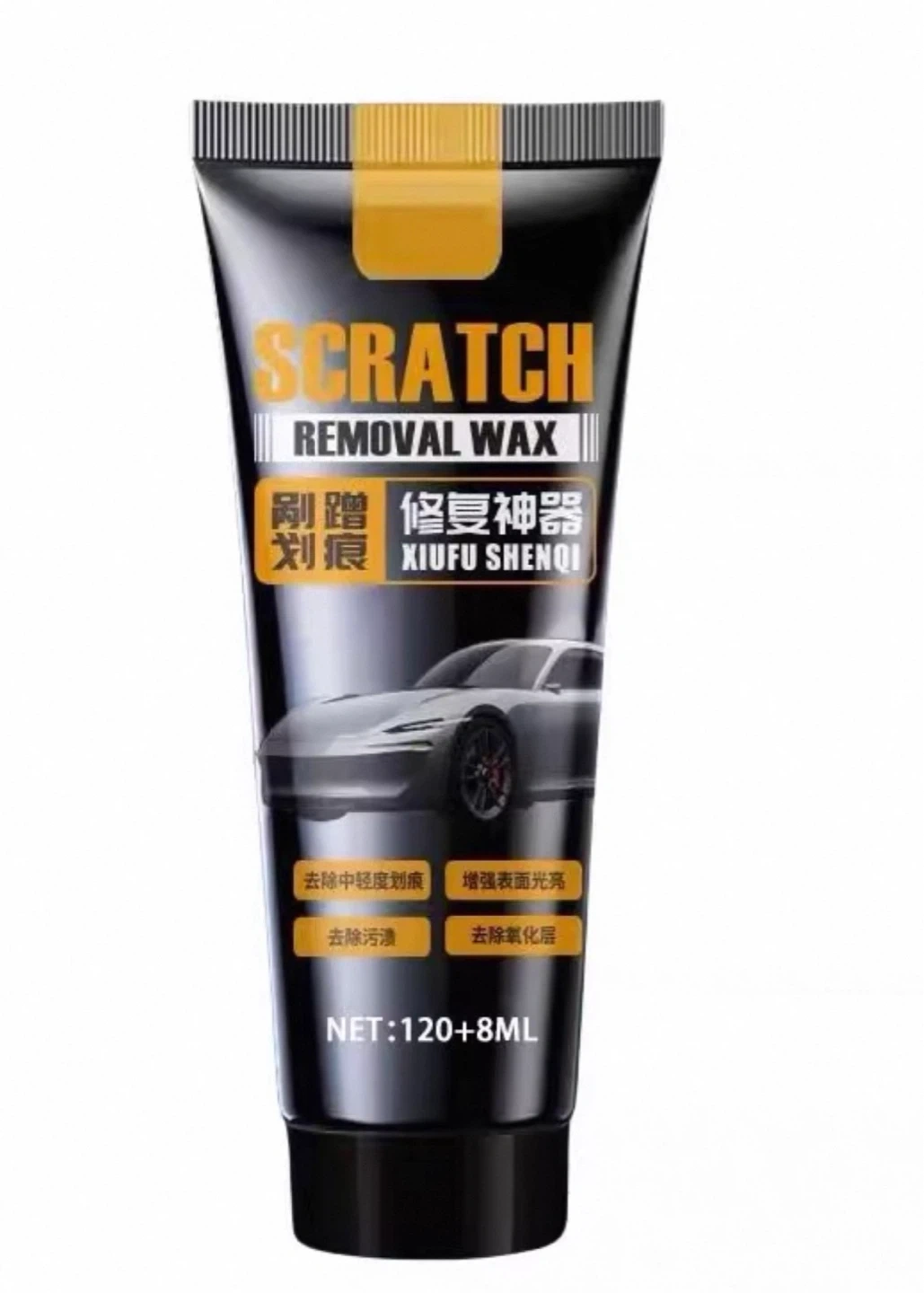 Brand new. This scratch removal wax is designed to help remove light to moderate scratches, clean stains, and eliminate oxidation layers from your car's surface. It also enhances surface shine. Comes in a 120+8ml tube. Perfect for restoring your car's finish!