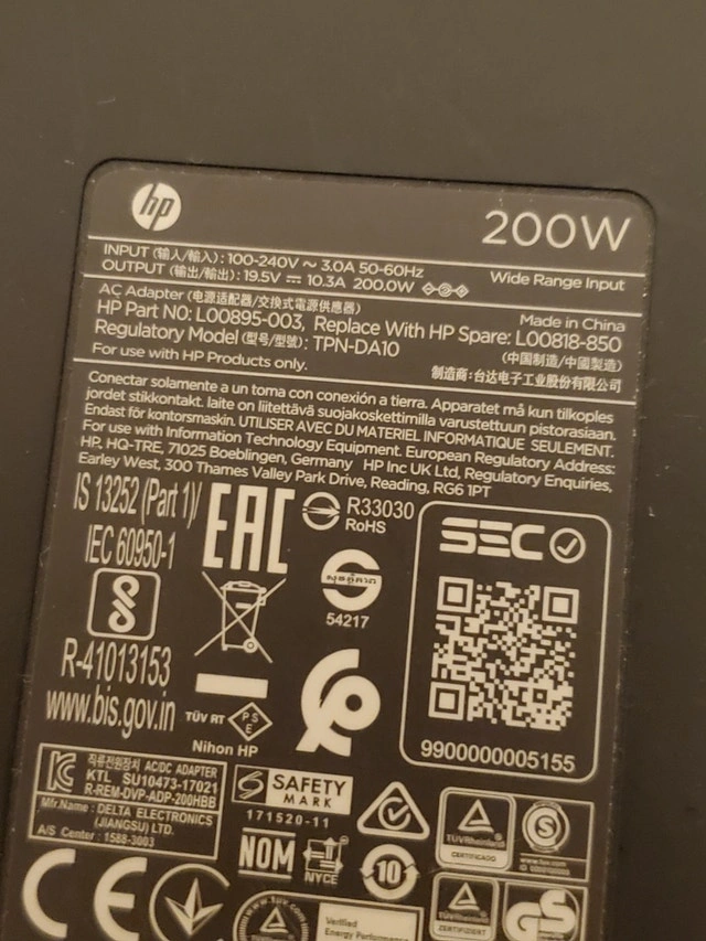 • Other compatible HP part numbers: TPN-DA10, L00818-850, W2F75AA, and L73385-001.