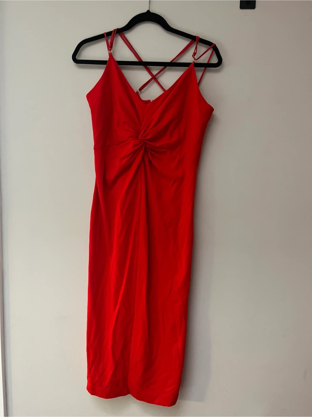 Size Large. Red red midi dress from Club Monaco. The dress features a stylish twist front detail. Perfect for a night out!