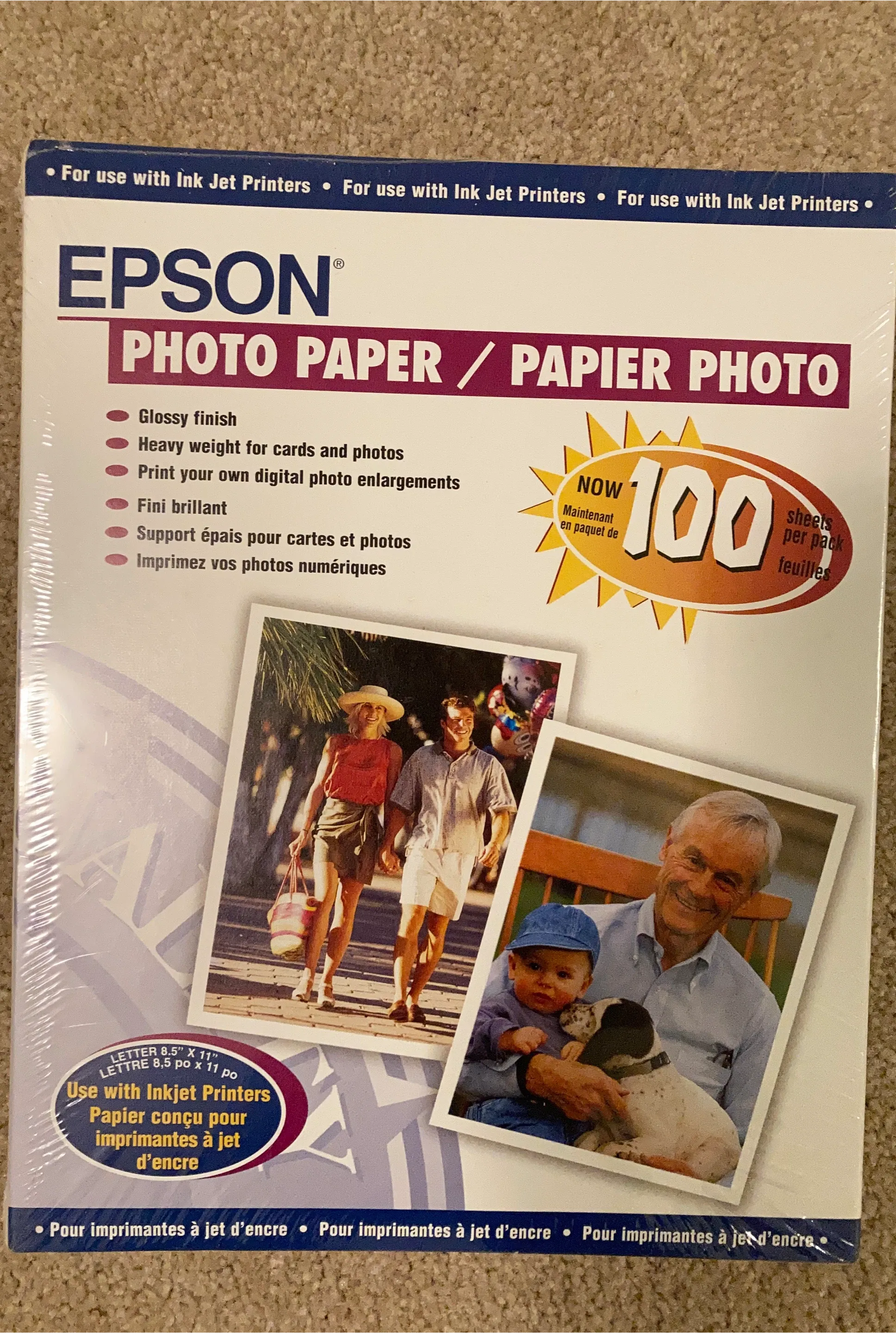 This is 100 sheets of Epson photo paper with a glossy finish. It's a heavy weight paper for cards and photos. The sheets are letter size (8.5" x 11"). Unpacked.