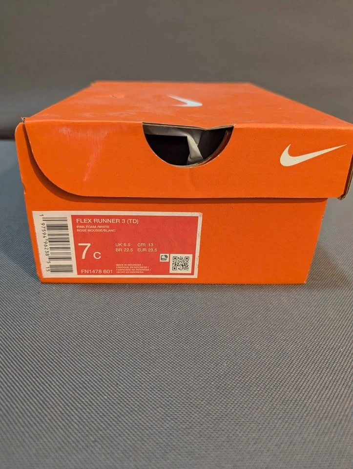Used Nike Flex runner 3 in pink. It's a slip on so you just pull the back, great for a toddler who is still learning how to put on their own shoes.