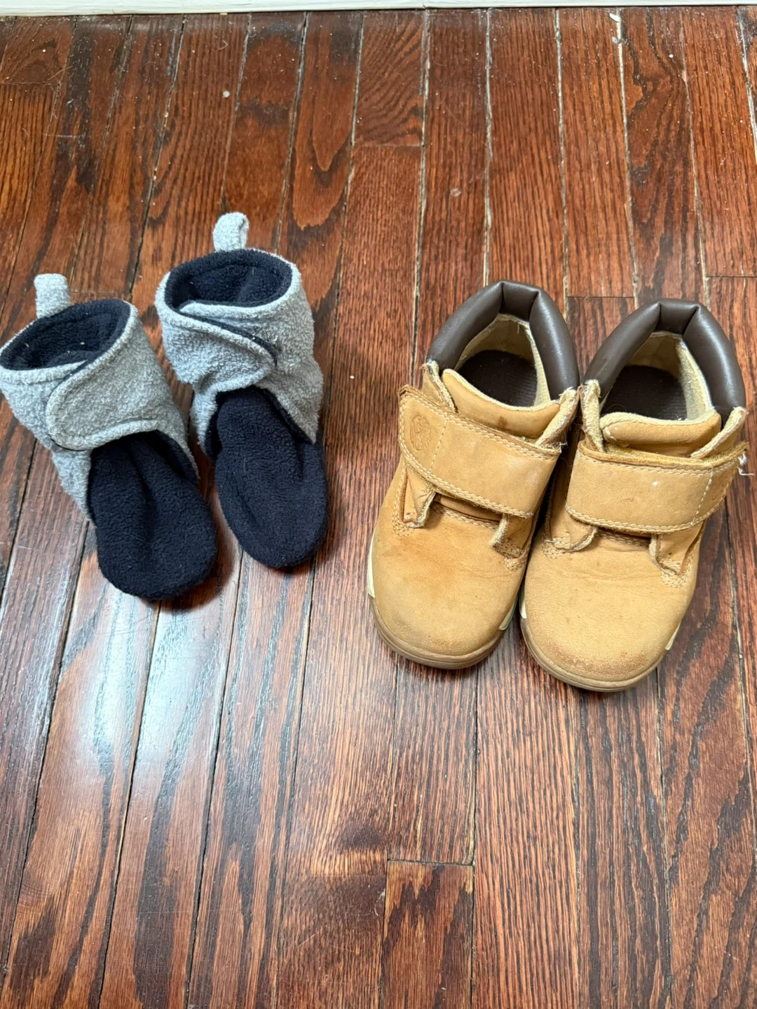 Baby booties brand: Hudson’s Bay. Size 12-24 months, stretchy fit with non-slip bottom.