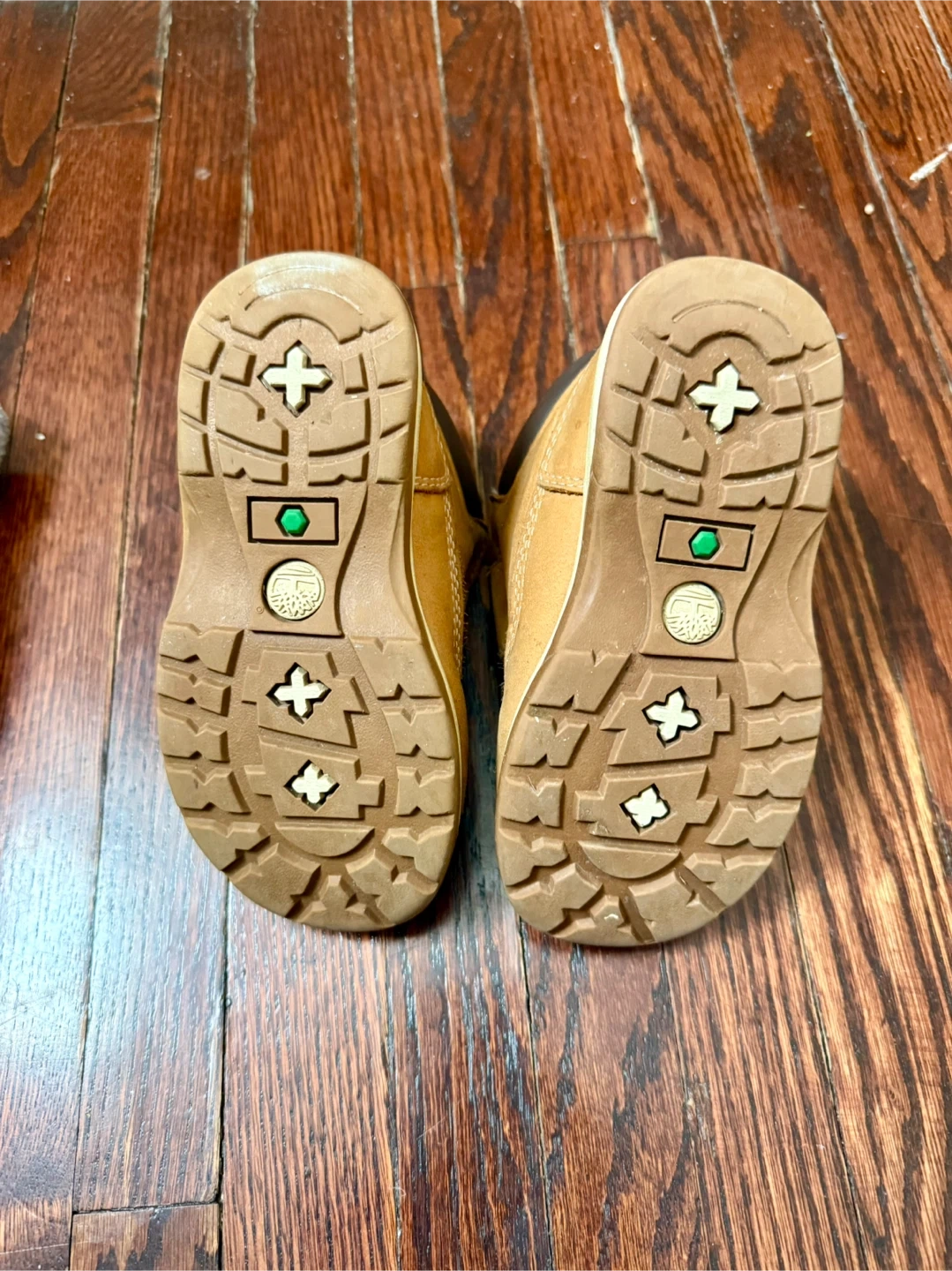 Toddler boots brand: Timberland. Size 6. Tan nubuck leather boots with hook-and-loop closure.