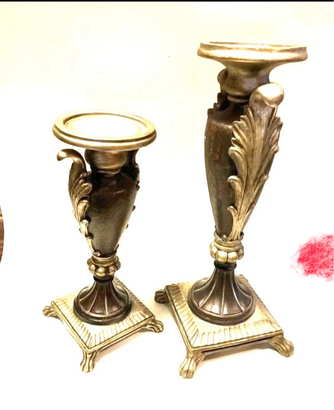 Set of 2 decorative candle holders. These are great for adding a touch of elegance to any room.