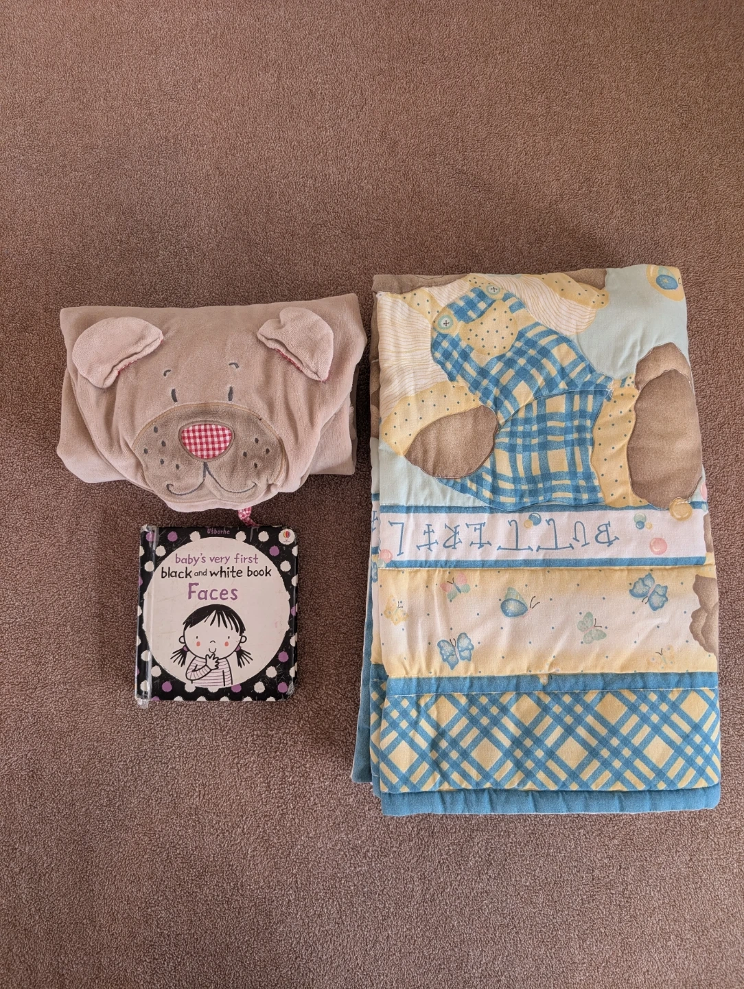 baby items, diaper changing mat, travel change pad, baby blanket, sensory book, newborn, infant, free baby stuff, bundle
