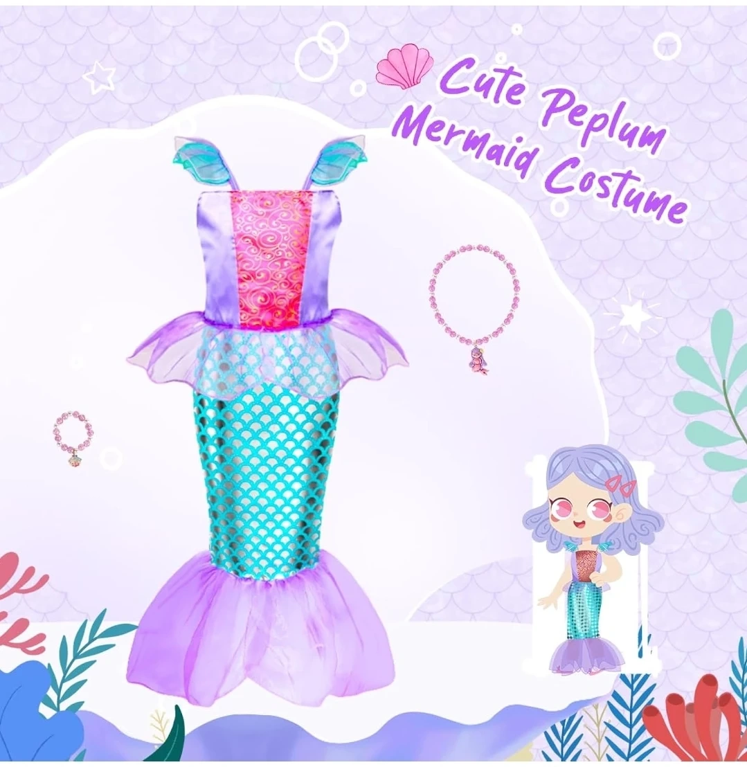 Girls' Anna Frozen Costume Dress with Necklace