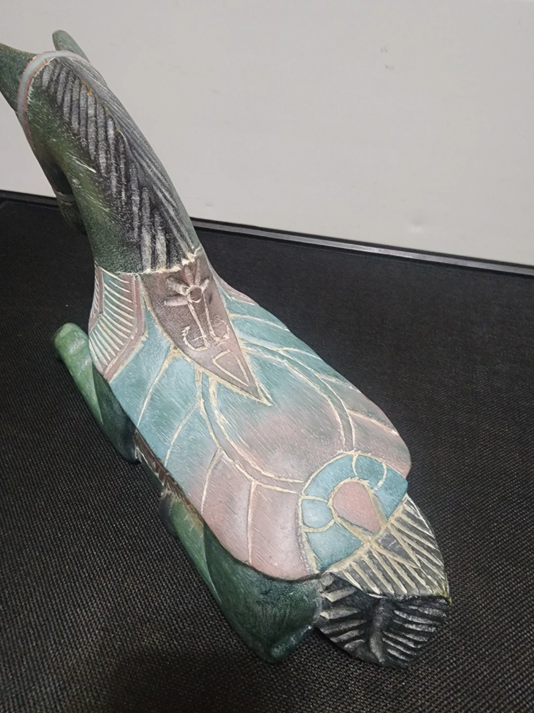 Hand-Carved Wooden Horse Figurine - Green