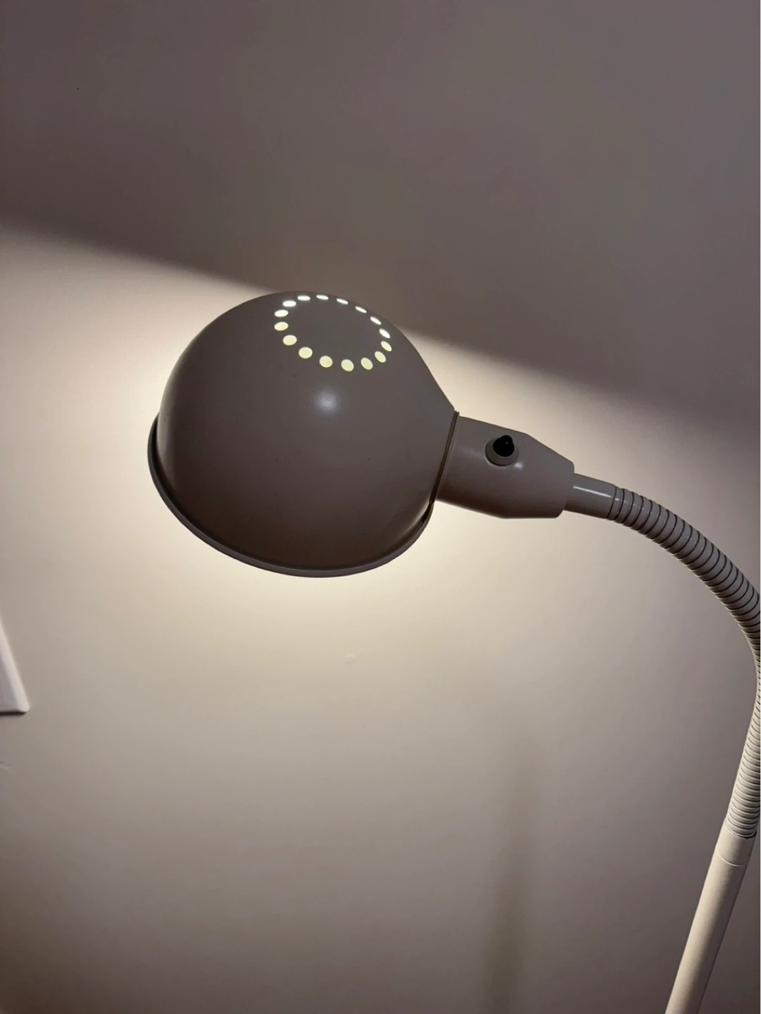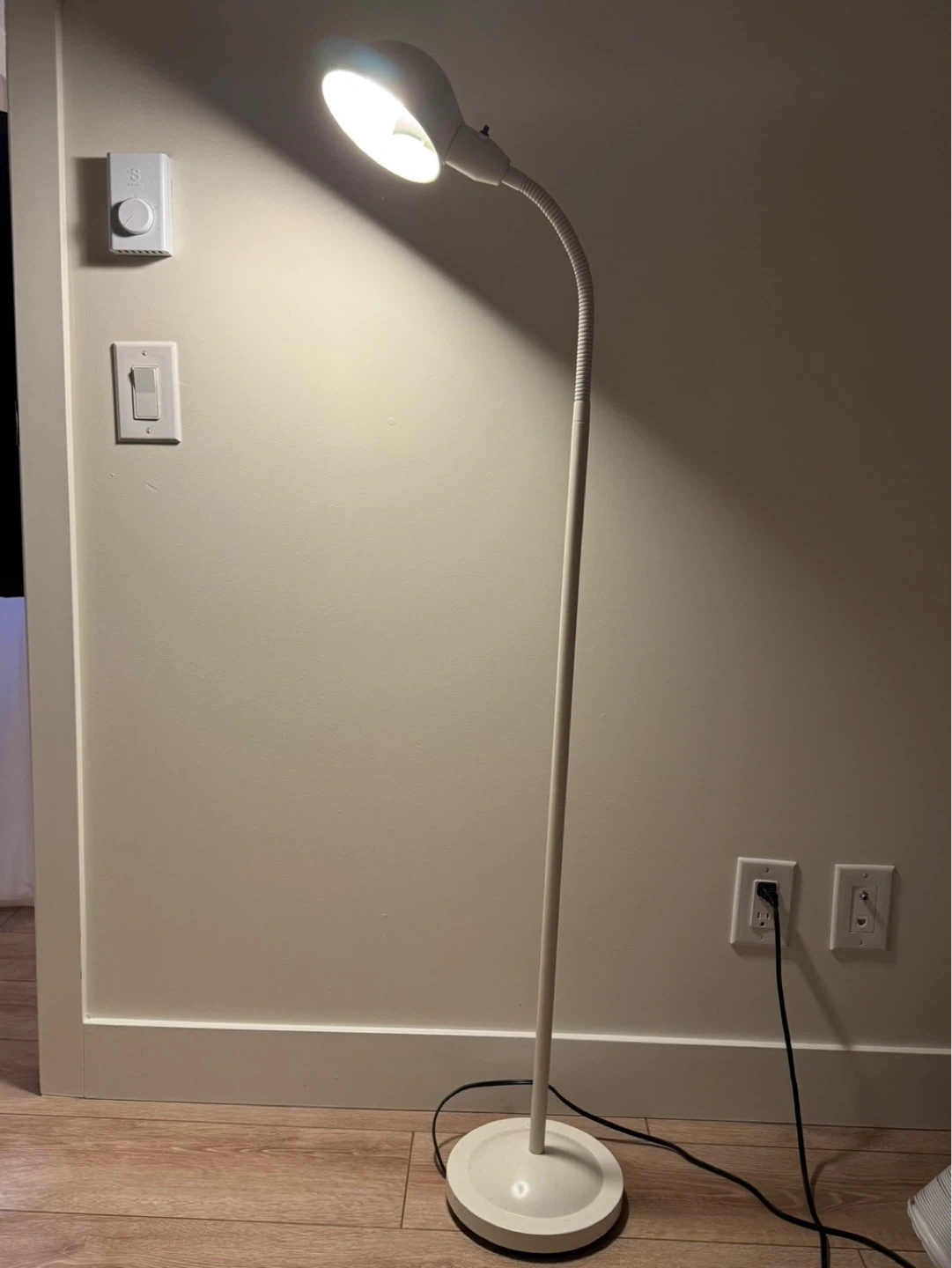 This floor lamp has a flexible gooseneck for easy positioning.