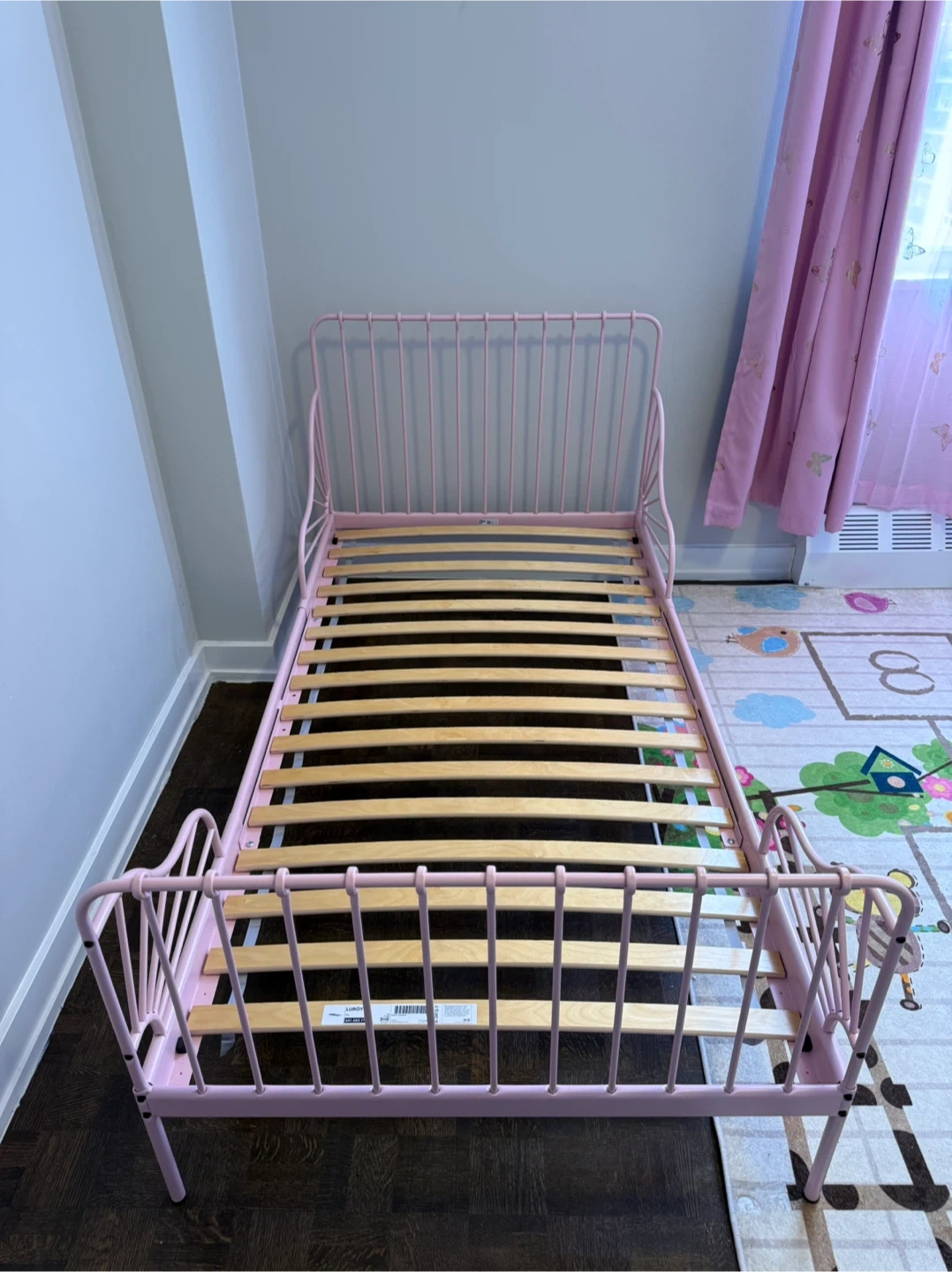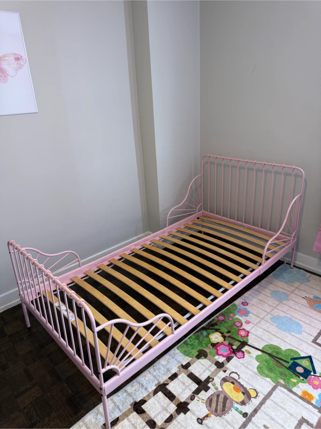 Pink Metal Twin Bed Frame with Slats