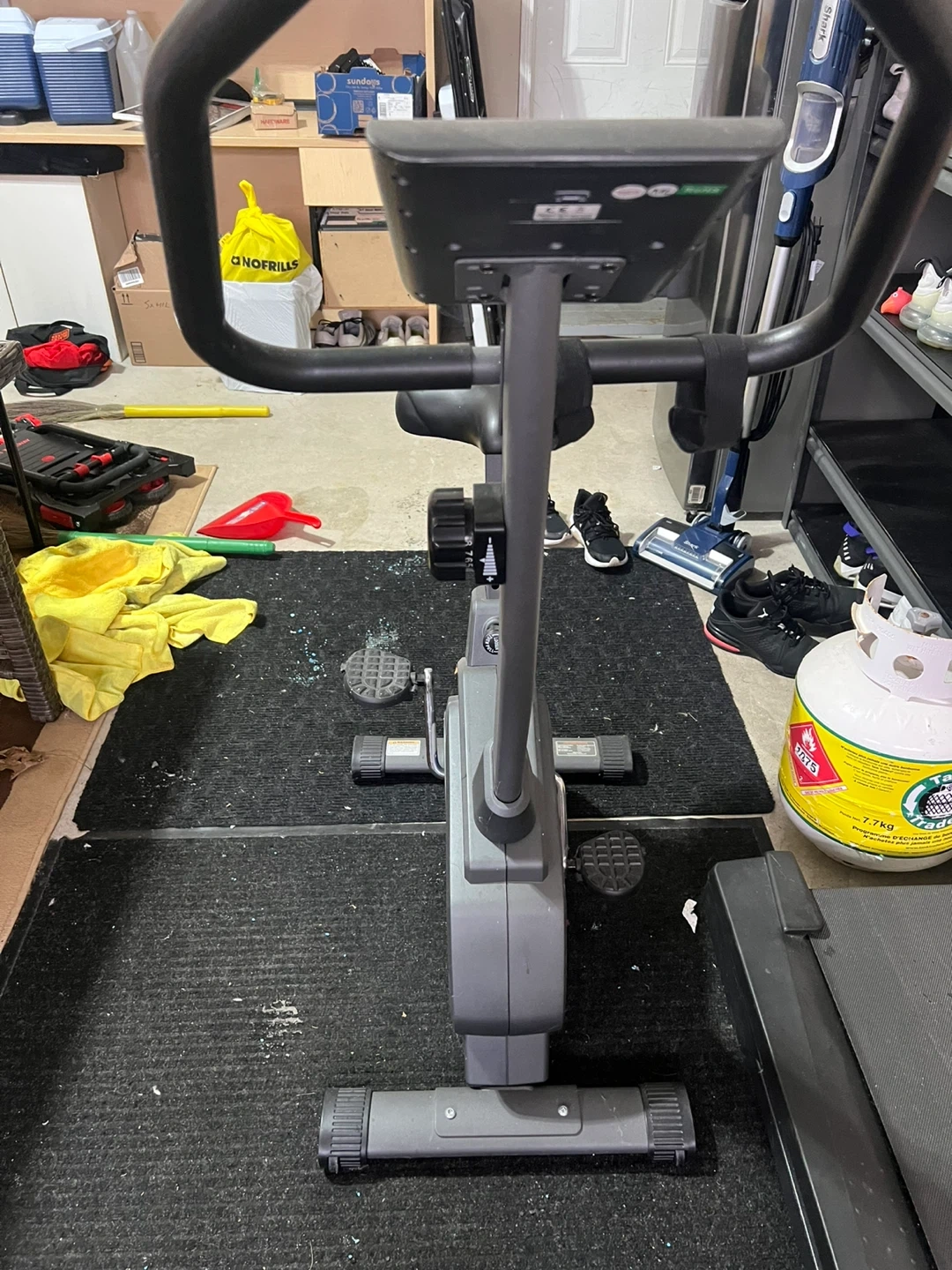 This is a Marcy stationary exercise bike. It has adjustable resistance for a customized workout. The comfortable padded seat makes longer rides more manageable.