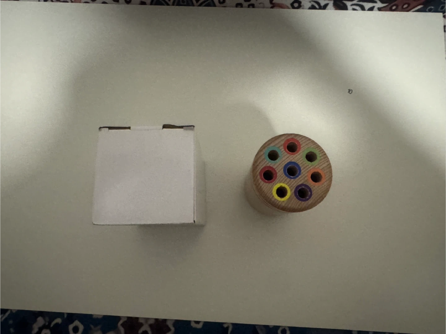 This is a wooden peg puzzle toy with colourful pegs. It comes in its original box. Great for little ones learning to sort colours and develop fine motor skills!