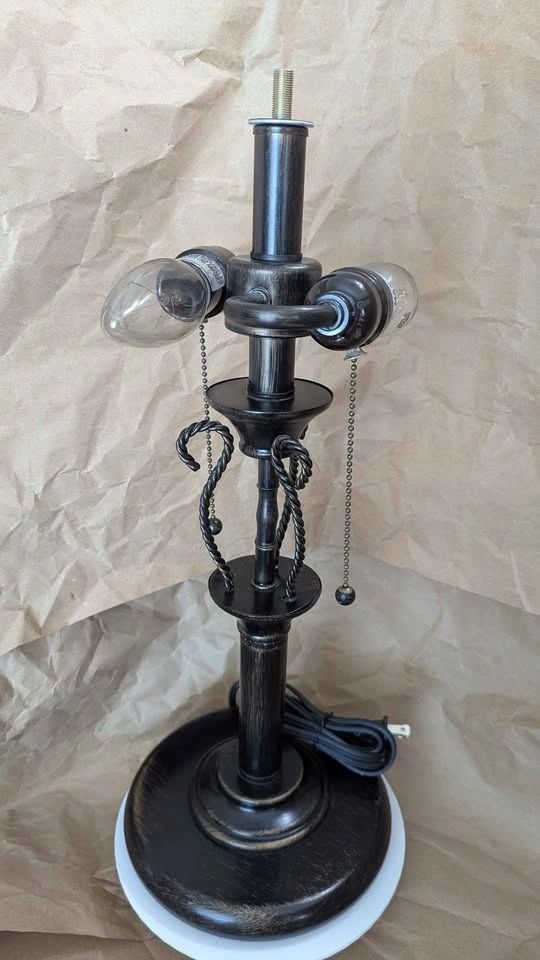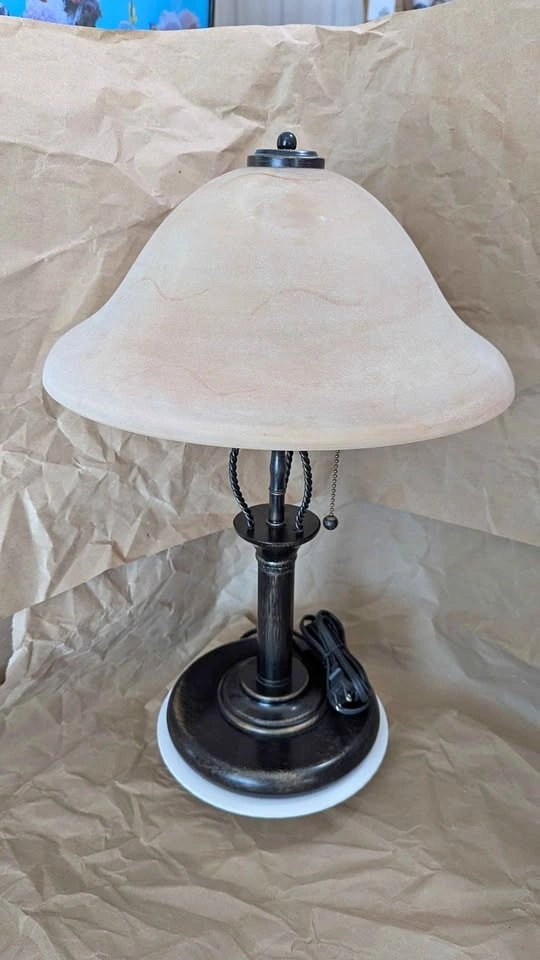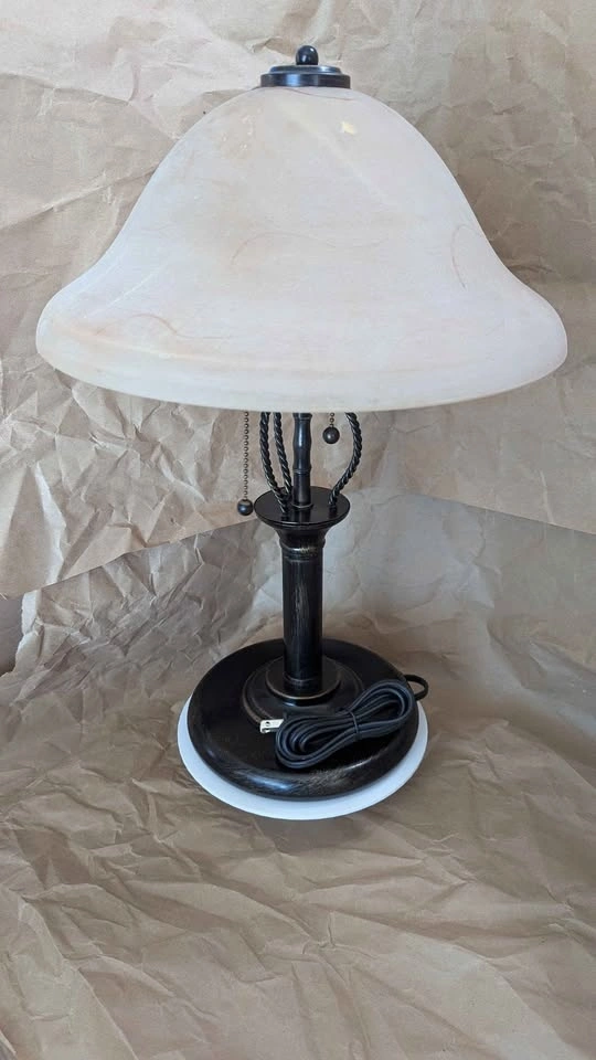 Working condition with 2 incandescent bulbs included. Height 19 inches, Shade Width 14 inches, Base Width 7.5 inches. Pickup in Innerkip, can drop off in Woodstock or deliver to Simcoe, Norwich, etc for a small cost.