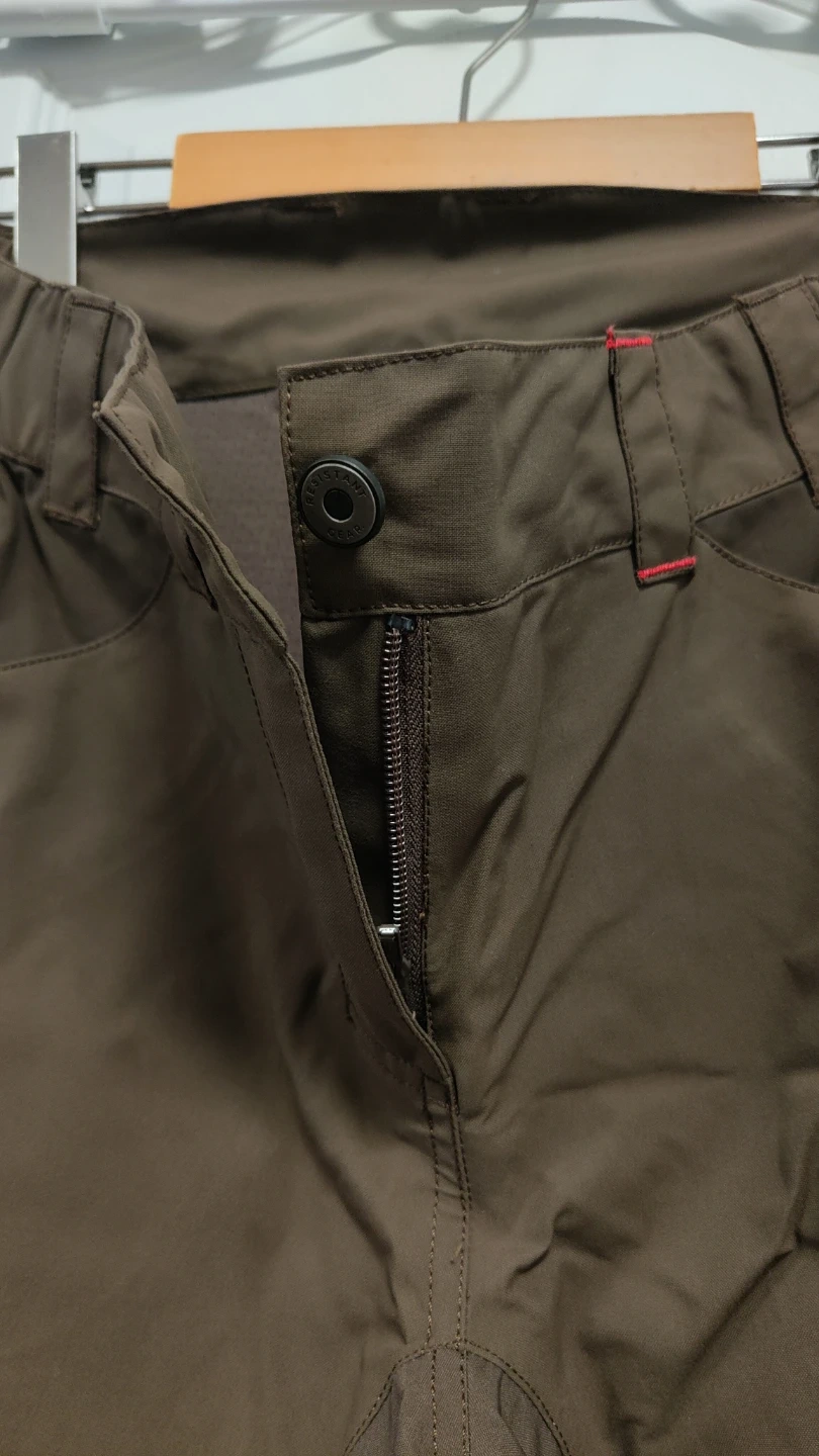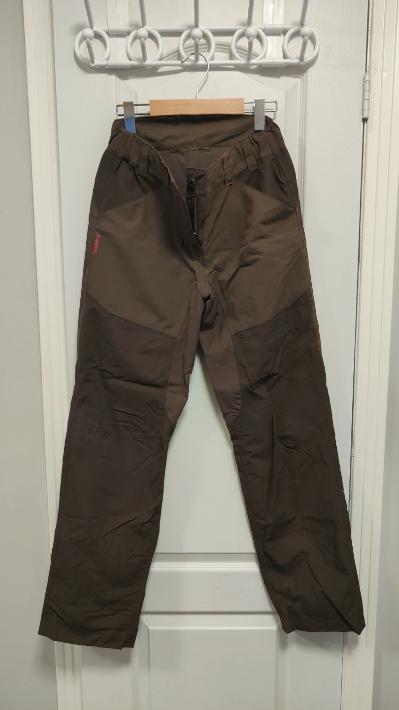 Durable SOLOGNAC brown outdoor pants. Has zipper and button closure, reinforced knees and seat area. Great for hiking or just casual wear.