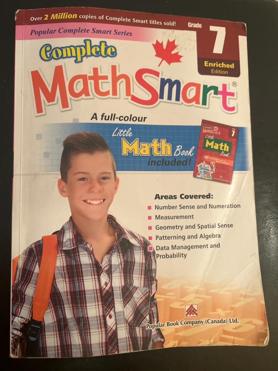 This workbook covers Number Sense and Numeration, Measurement, Geometry and Spatial Sense, Patterning and Algebra, and Data Management and Probability. It's a full-colour edition with a little math book included. Popular Book Company (Canada) Ltd. published this.