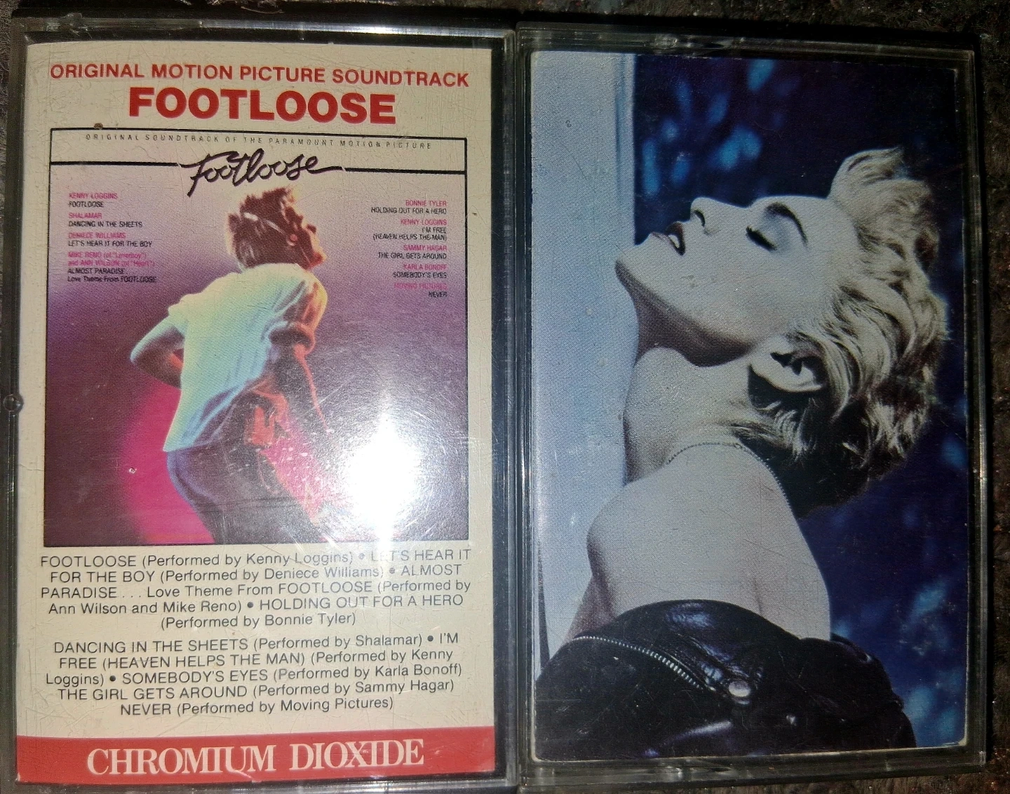 This is the original motion picture soundtrack for Footloose on cassette tape. It includes songs performed by Kenny Loggins and Deniece Williams. The other cassette is "Christmas Favorites" from Cedarmont Kids, and Madonna. Pick up only unless near the intersection of Oxford and Gammage Street.