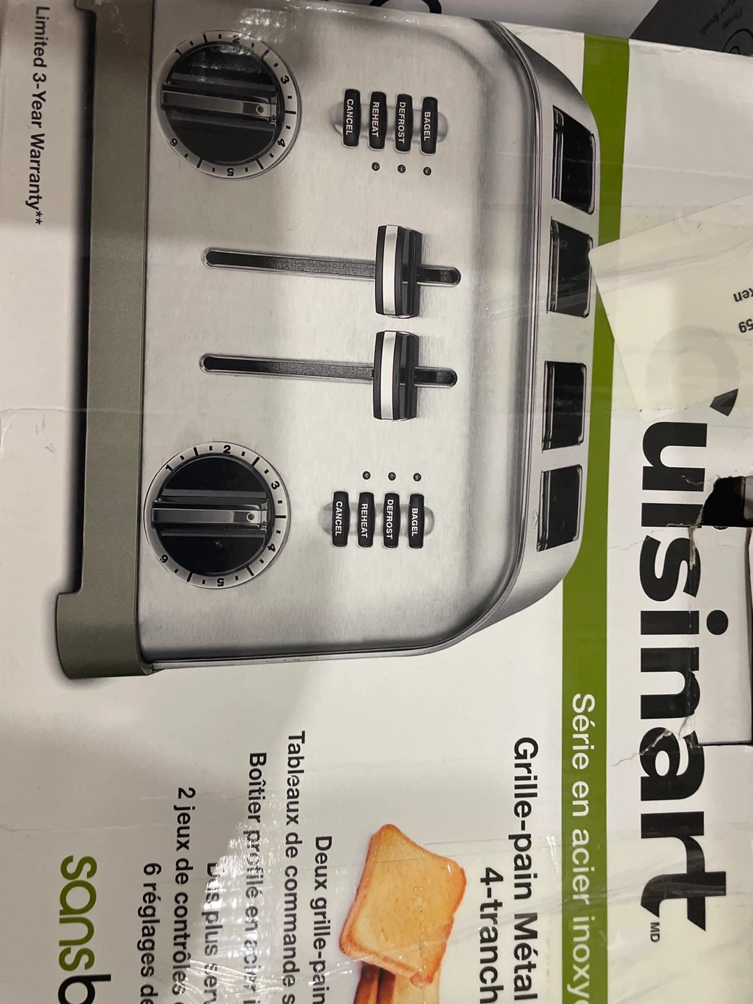 Small dent - This is a Cuisinart 4-slice toaster. It features a stainless steel housing and comes with 2 sets of controls. It offers 6 browning settings for your toast.