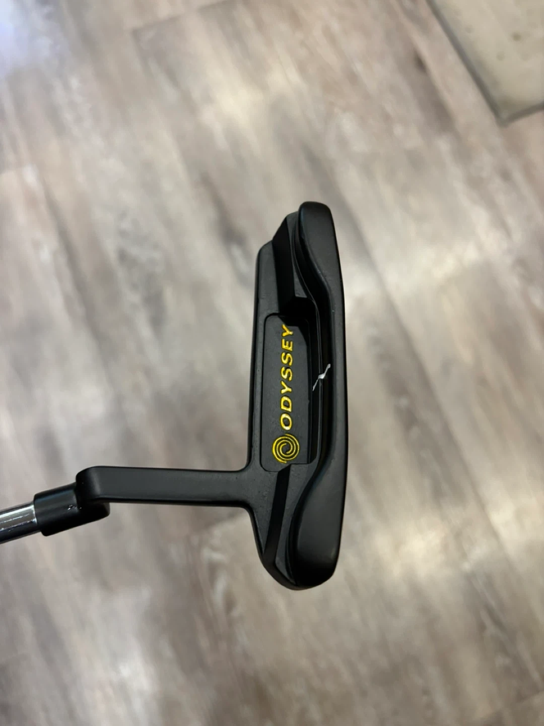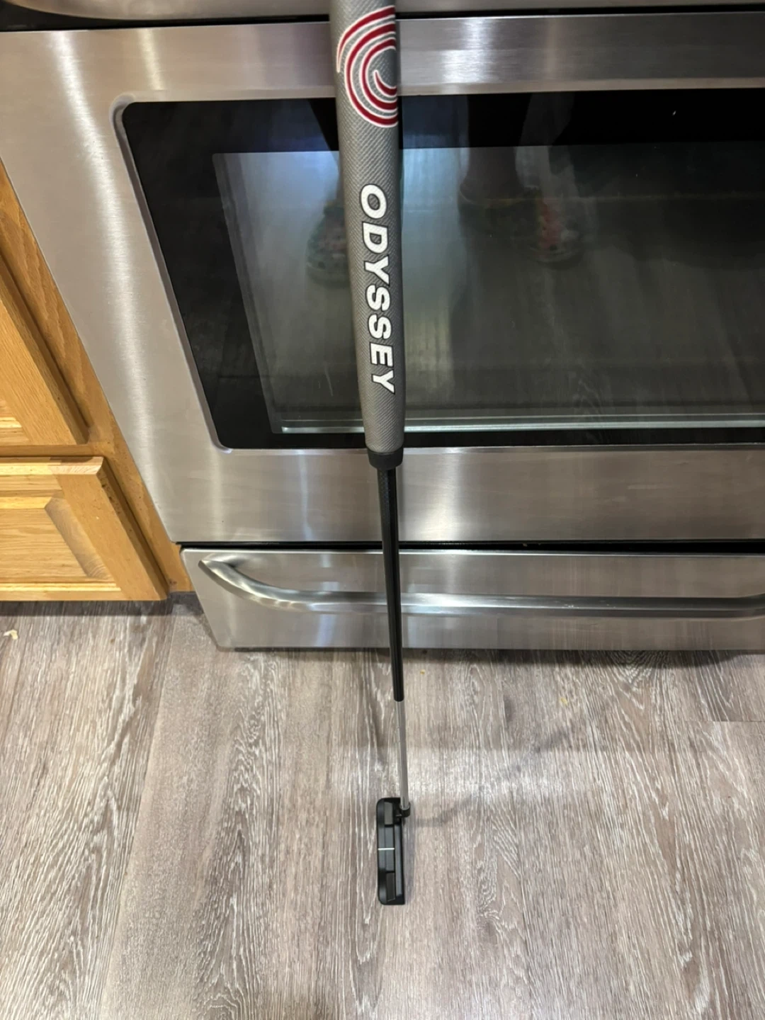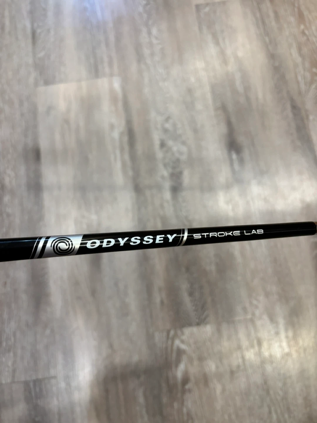 Odyssey Stroke Lab putter with a white headcover. It's designed for consistent putting strokes. This putter is great for golfers looking to improve their game on the greens. Head has totally been refinished. 34”
