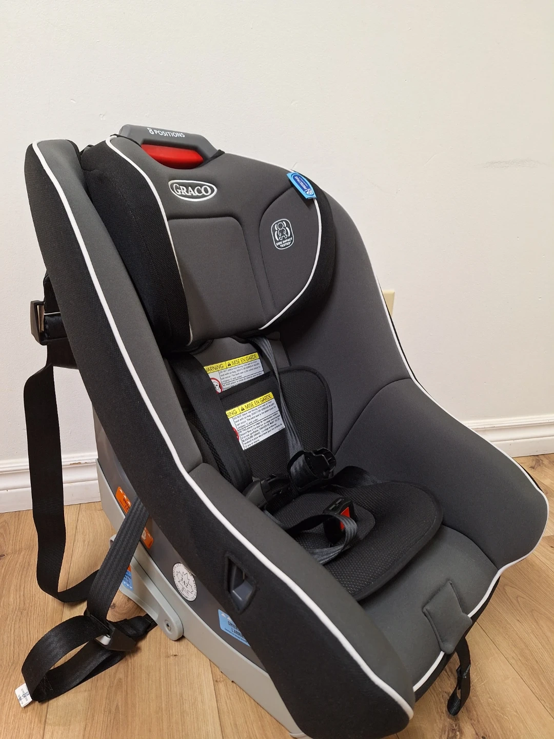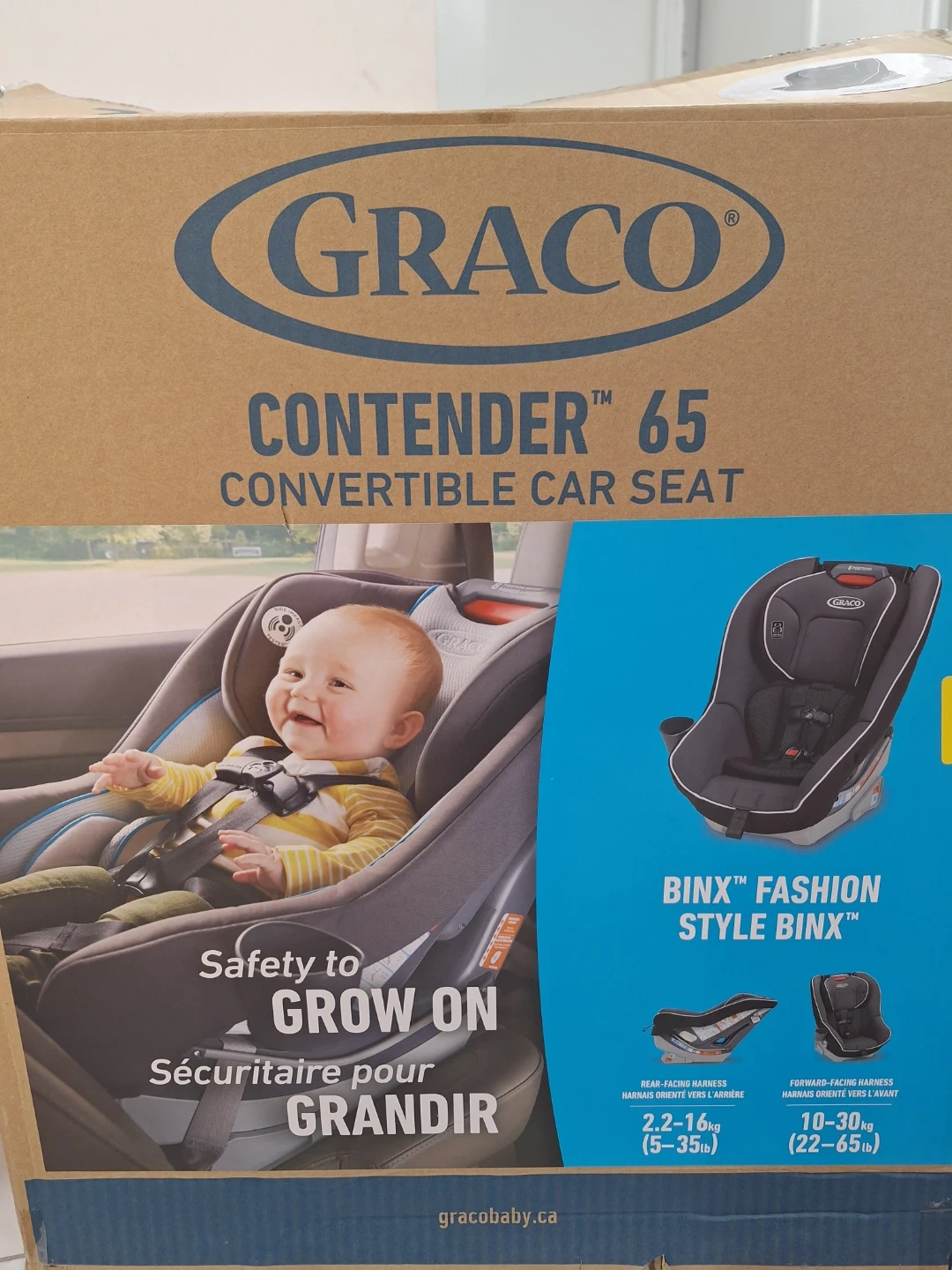 This Graco Contender 65 convertible car seat is designed for safety and comfort. It supports rear-facing from 5-35 lbs and forward-facing from 22-65 lbs. It also offers 8 recline positions for your child's growing needs.