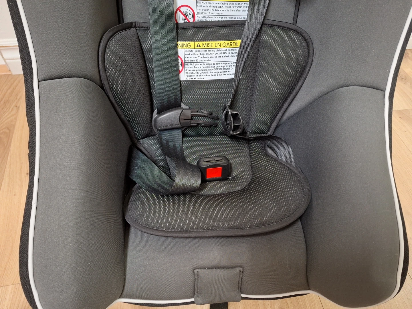 Gently used only Once. We purchased another seat and this one was never used after. Comes with manual and box.