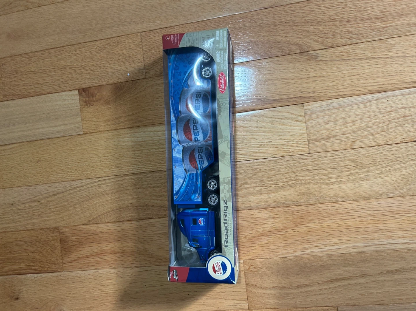 Selling a brand new Jada Toys Pepsi Road Rigs truck! It's still in its original packaging. Has a little rip on the side of box and on top. Perfect for collectors or as a gift for a young truck enthusiast. The box is included!
