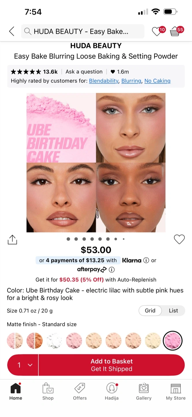 Huda Beauty Easy Bake Loose Baking & Setting Powder, shade Ube Birthday Cake. It's lilac shade. The filter powder has matte finish, It's perfect for setting makeup for a bright & rosy look! Pick up cash only.