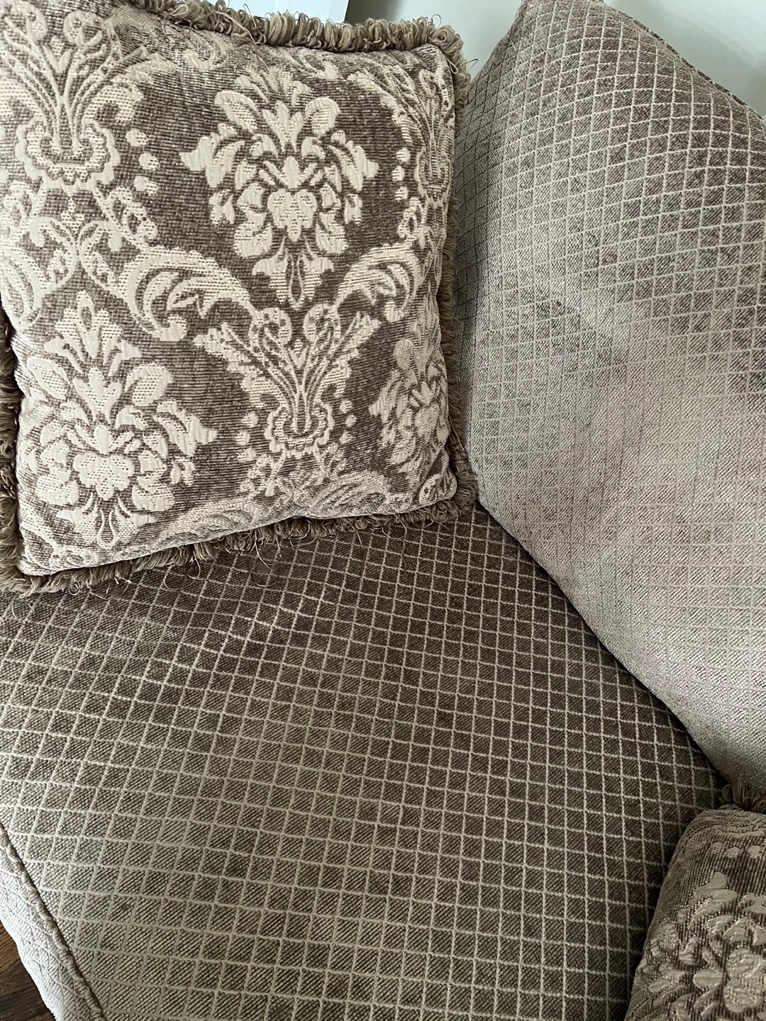 Durable fabric in neutral taupe colour - stainfree, no damage, smoke free home