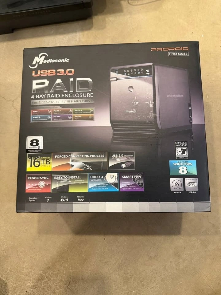 Selling a used RAID enclosure that works well. It can take 4 drives. I used it with 2 18TB Exos drives which I'm also selling. Let me know if you're interested!
