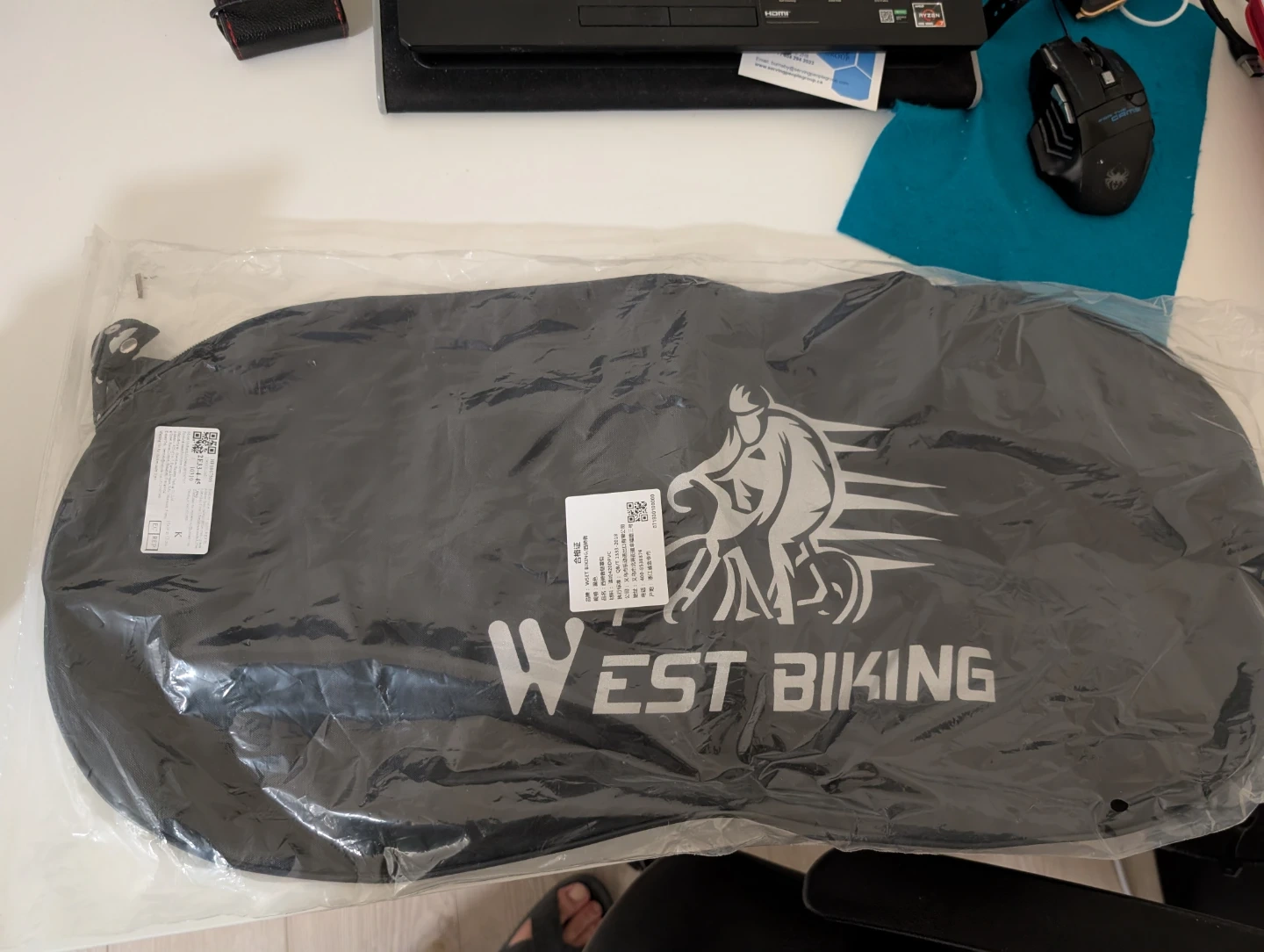 This is a new West Biking bicycle saddle cover. It's made of 420D PVC material for durability. This cover helps protect your bike chains area from the elements.