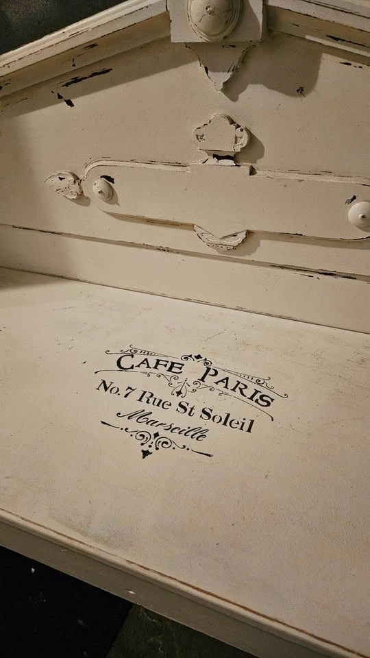 French rustic chic bench, reconstructed from an antique child's bed frame. Features a distressed ivory finish and was used as display in a boutique. Dimensions are 51" wide x 31" tall x 22.5" deep. It has a generous deep seat, perfect for a cushion. Comes with antique wheels that can be removed. Feel free to message if you have any questions!