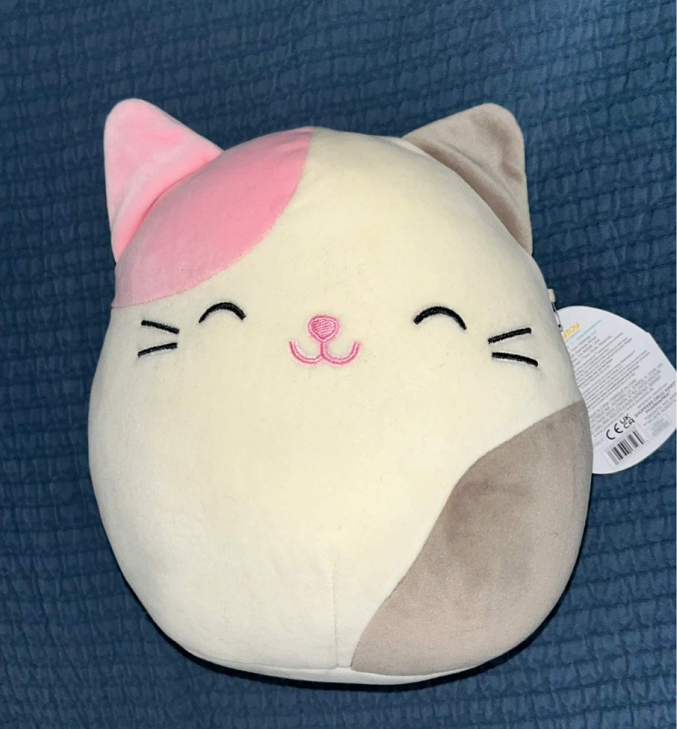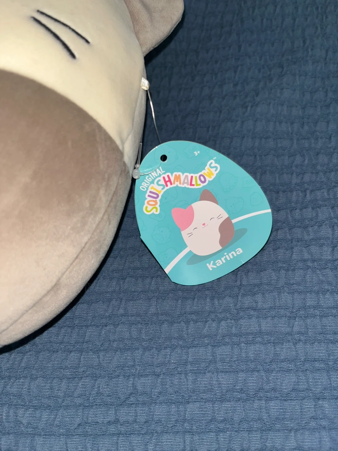 This is a Squishmallows Karina the cat plush. It's soft and cuddly, perfect for snuggles. Made with plush material, it's a great companion for kids and collectors alike!