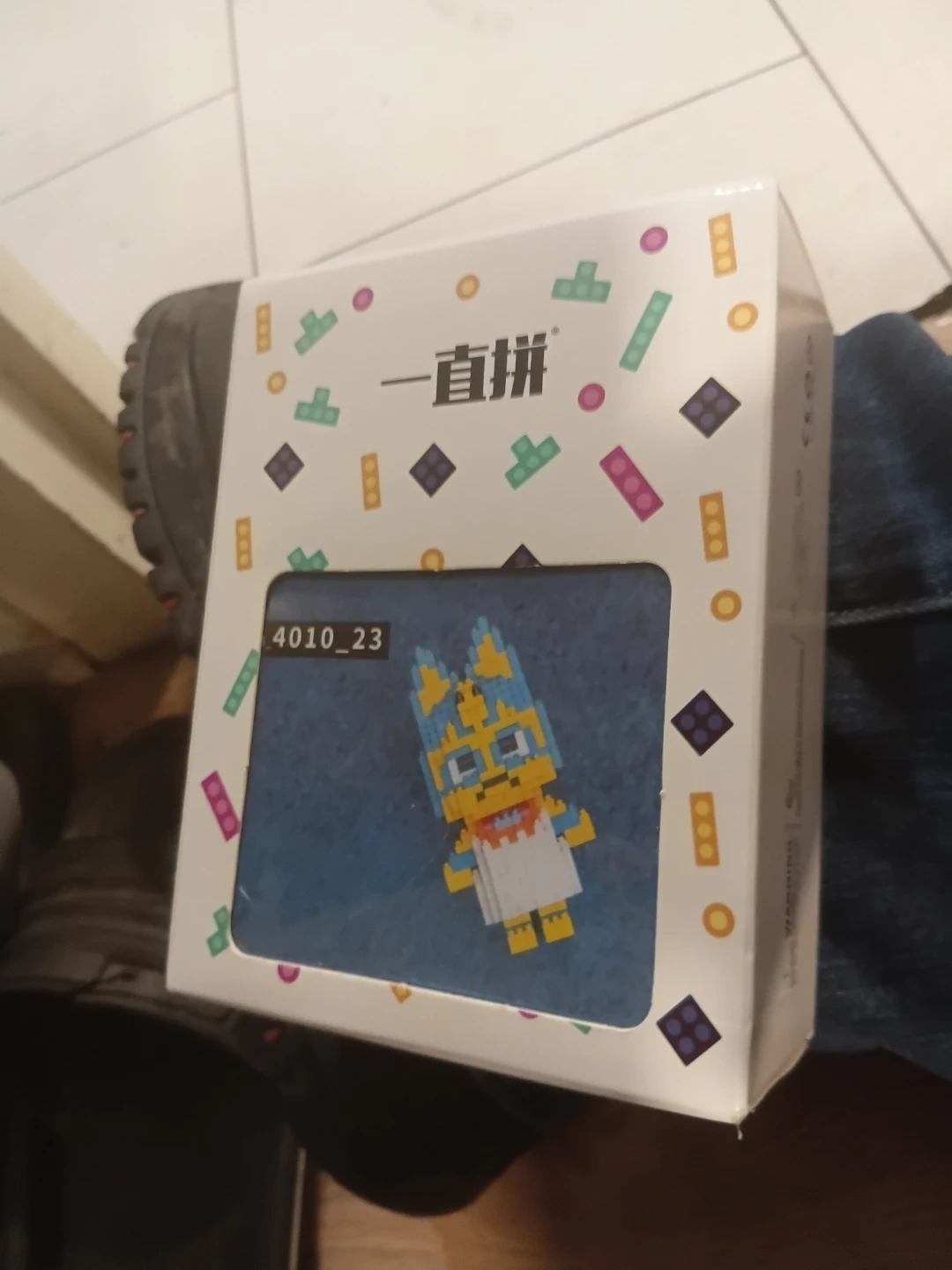 This is a building block toy set featuring a cute character. It's a great activity for kids and adults alike. The set includes all the necessary pieces to build the figure shown.