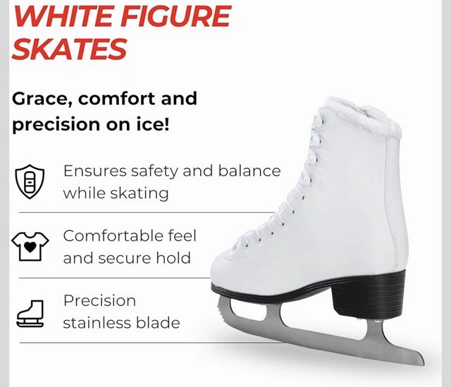 Brand new figure skates in their original box, ready for gliding across the ice! Perfect for beginners, professionals or those looking to upgrade, they offer great support and comfort. These figure skates boast a sleek design and durable construction, ensuring a smooth skating experience.
