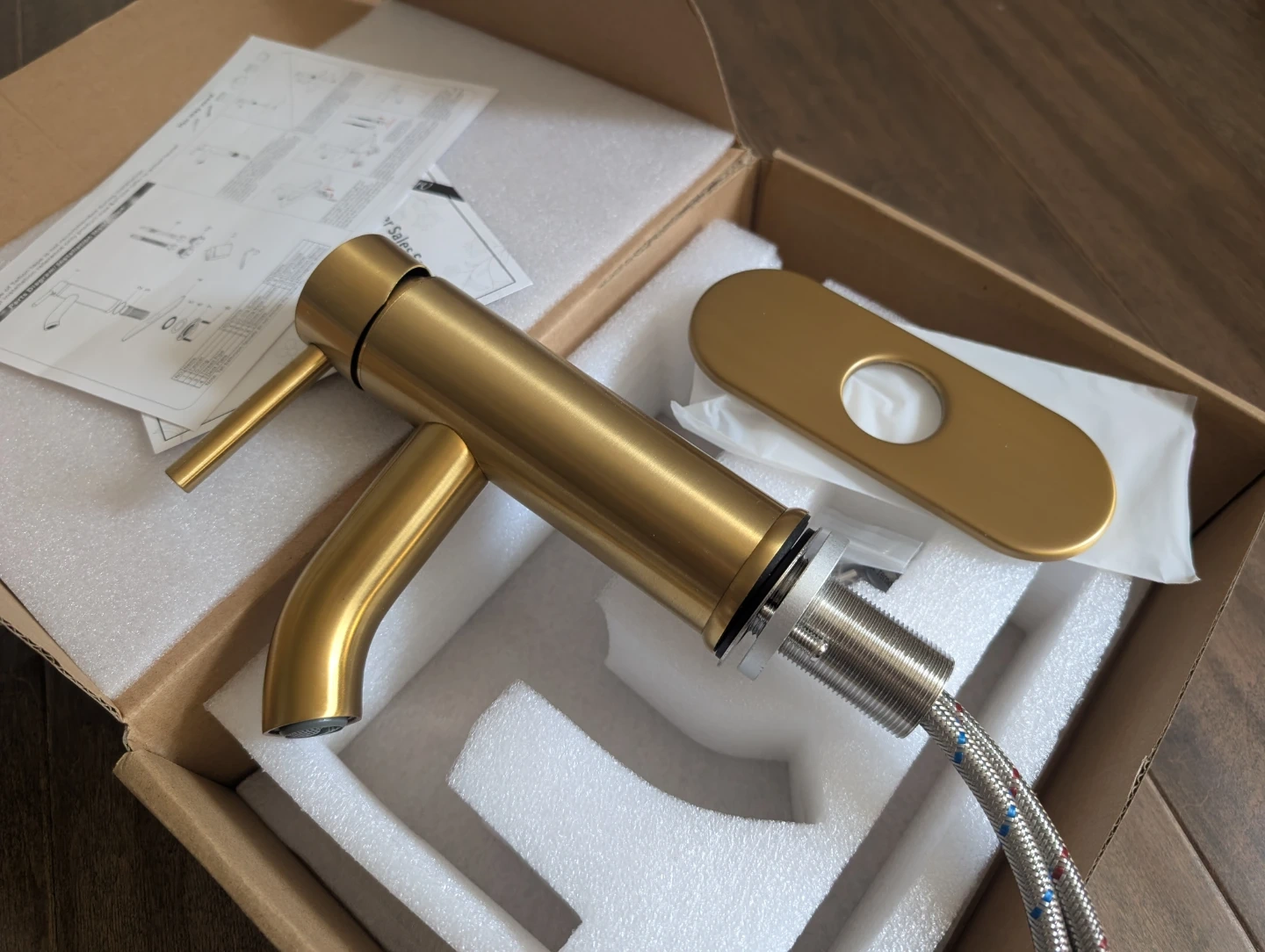 Brand new gold bathroom faucet for sale. Single hole, single handle basin, plate included, $45 FIRM.