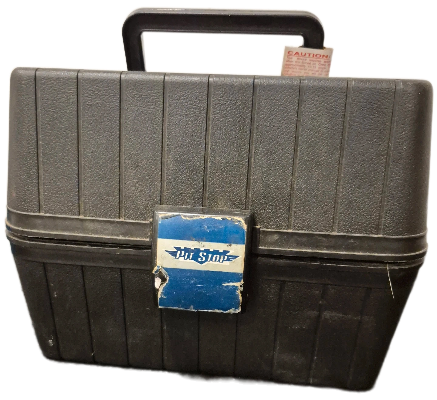 This vintage Pit Stop lunch box is great for keeping food warm on the go. It's a portable food warmer with a black plastic exterior and a silver-tone interior. Includes power cord.