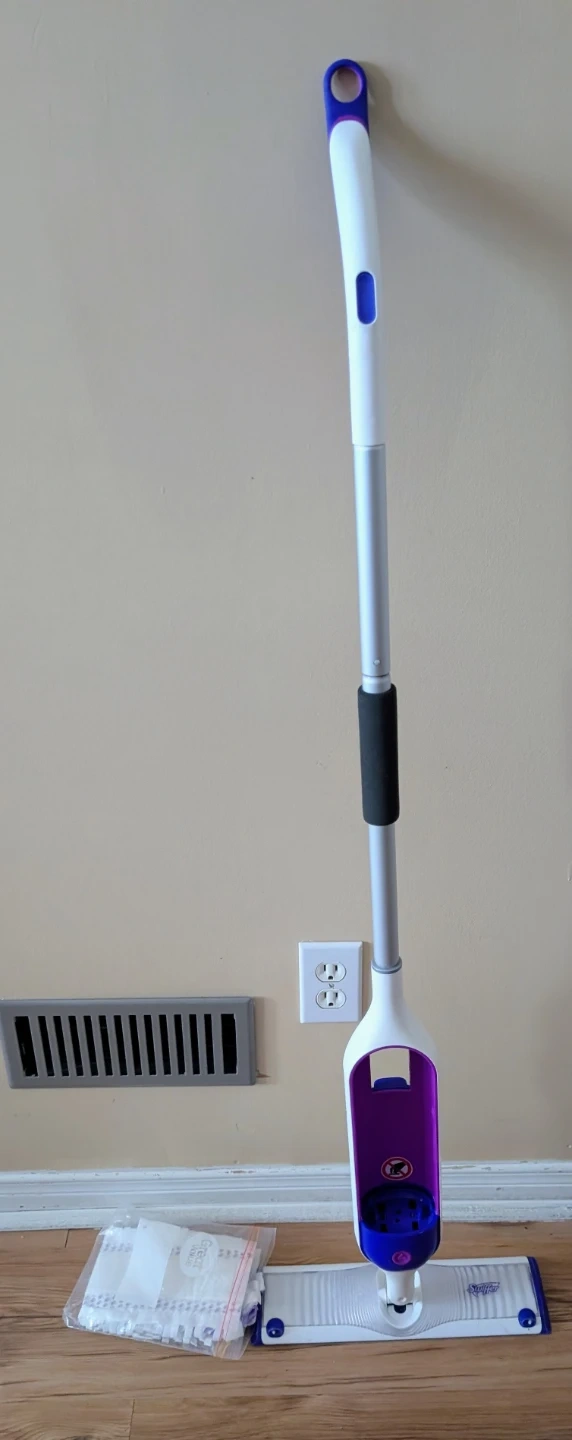 1 mop pad. It's a convenient tool for keeping your floors clean. The mop features a comfortable handle and a swivel head for easy maneuvering. It's useful for quick cleanups of spills and everyday dirt. Great for kitchens and bathrooms!