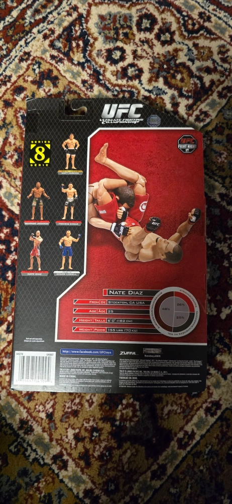 Selling a brand new, in-box UFC Nate Diaz action figure! It's part of the UFC Collection and Series 8. This Zuffa collectible figure is perfect for any UFC fan. The box is included!