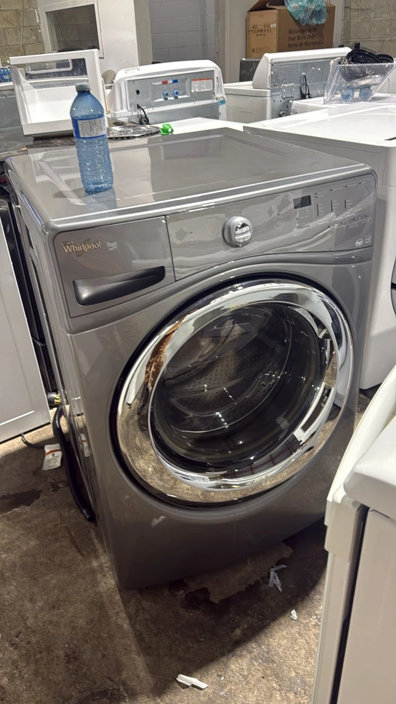 Selling a Whirlpool Duet front load washing machine in grey. It's in good working condition and ready to go!