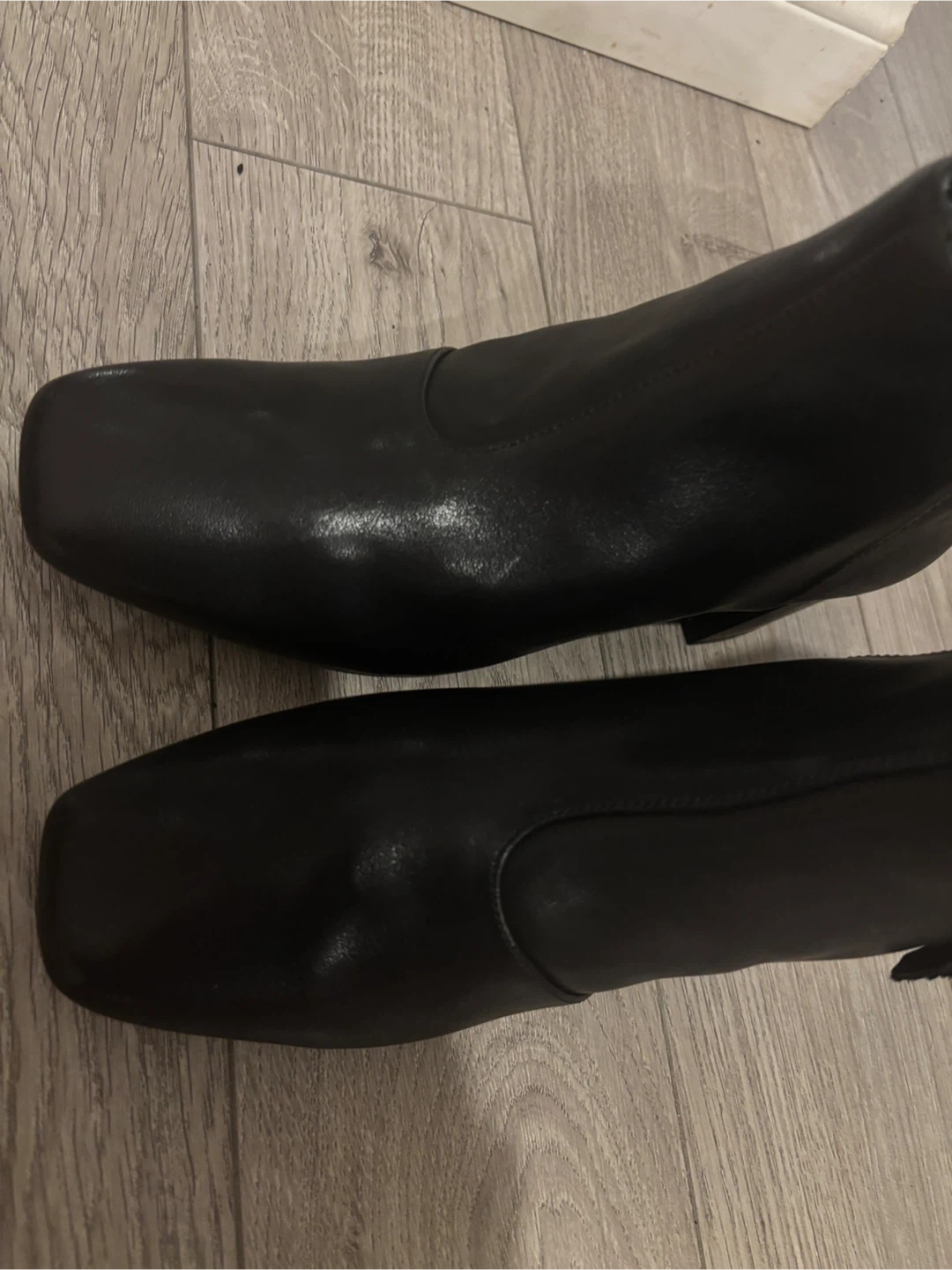 Black Leather Ankle Square Boots